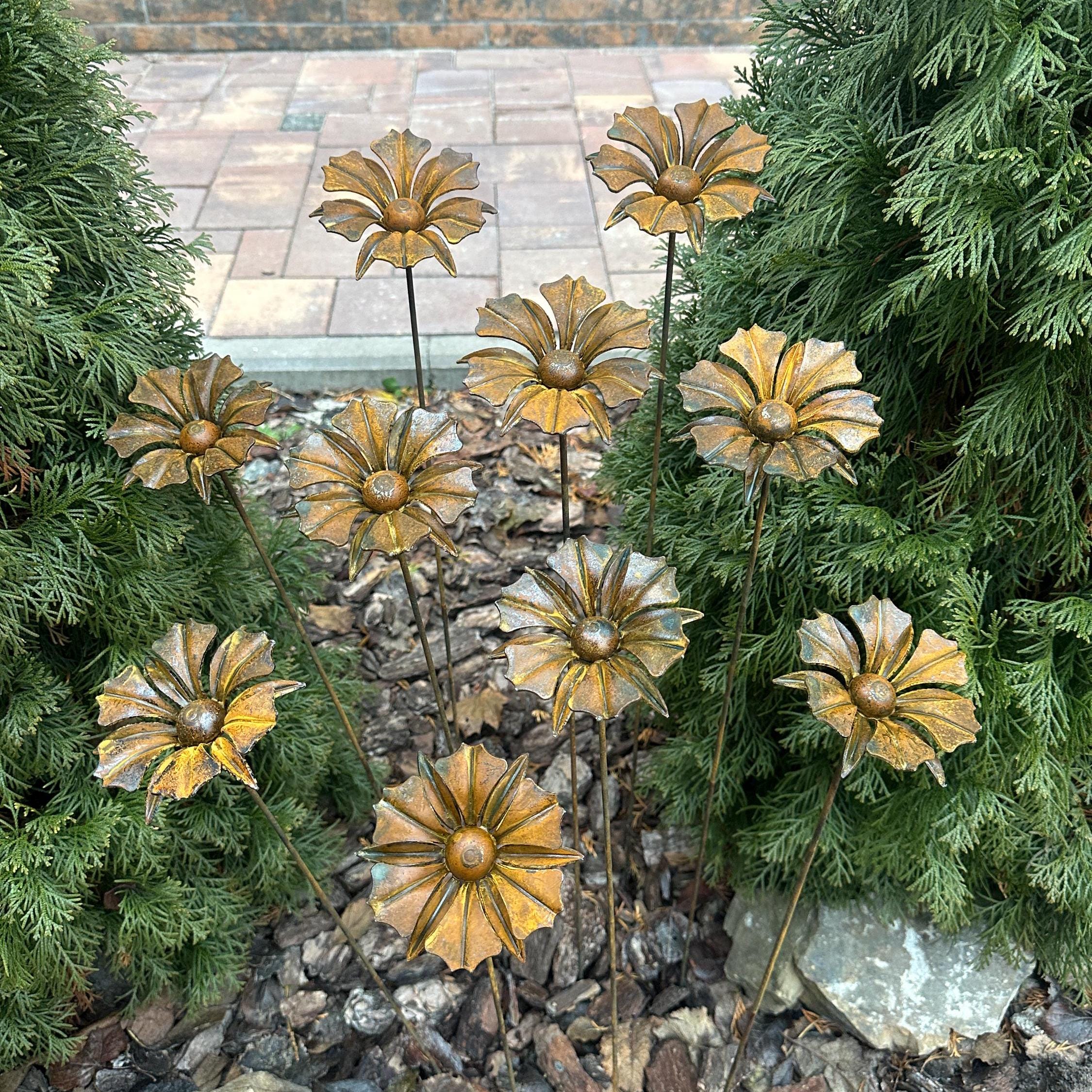 This Rustic handmade metal flowers set of 10 will place decorative accent in the garden compositions and landscape, create an atmosphere of romance and coziness in your home. This rusty metal art could be used as decoration at your home, in your garden, backyard, terrace or entrance to your home. This yard decor made from natural metal and it covered with a natural rust. This rusty garden decor can be used all year round, it is not afraid of precipitation, direct sunlight, etc.