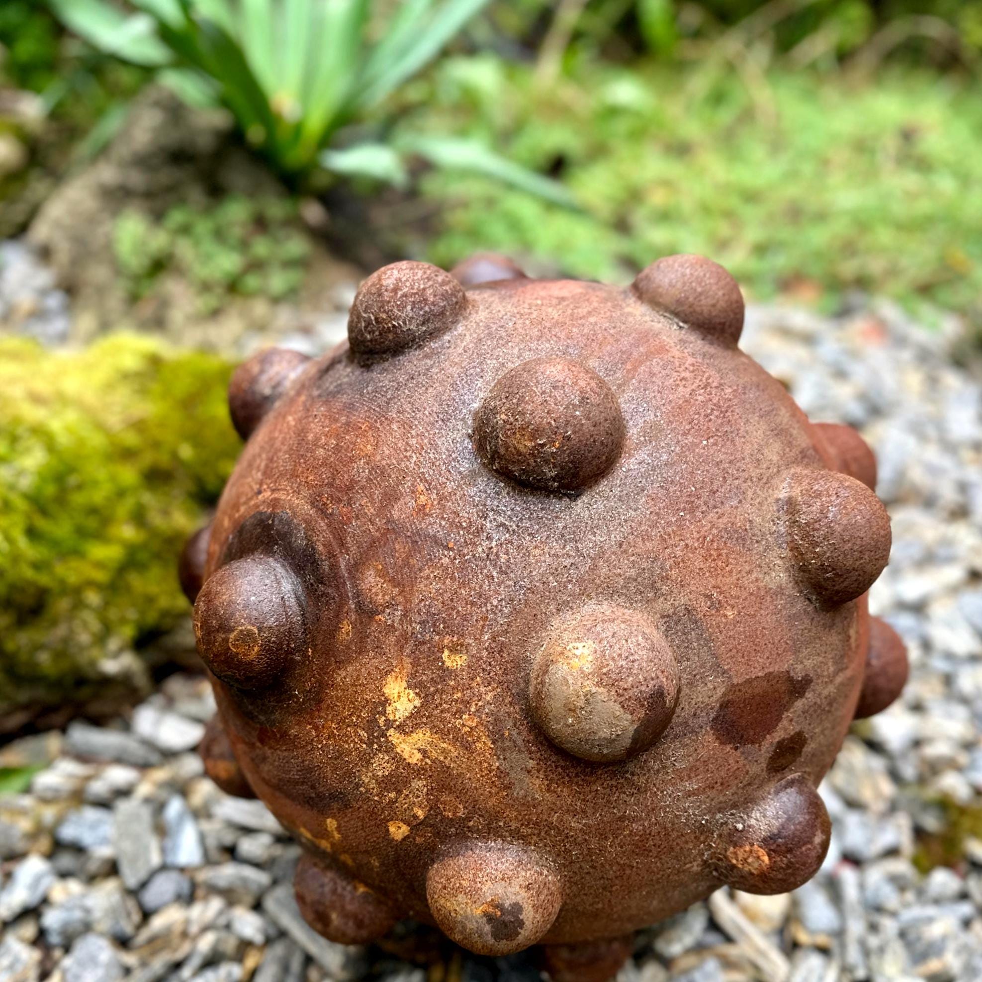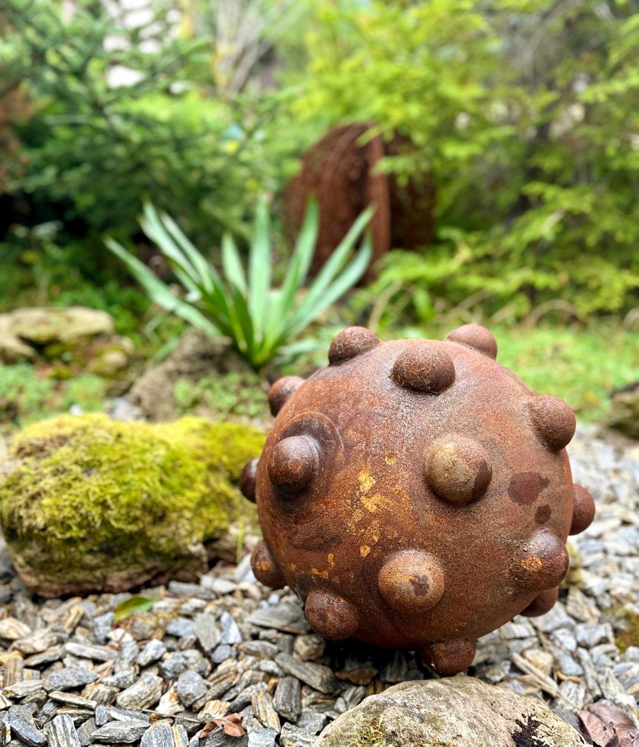 16” Rusty Metal Zen Garden Sphere – Handcrafted Outdoor Art