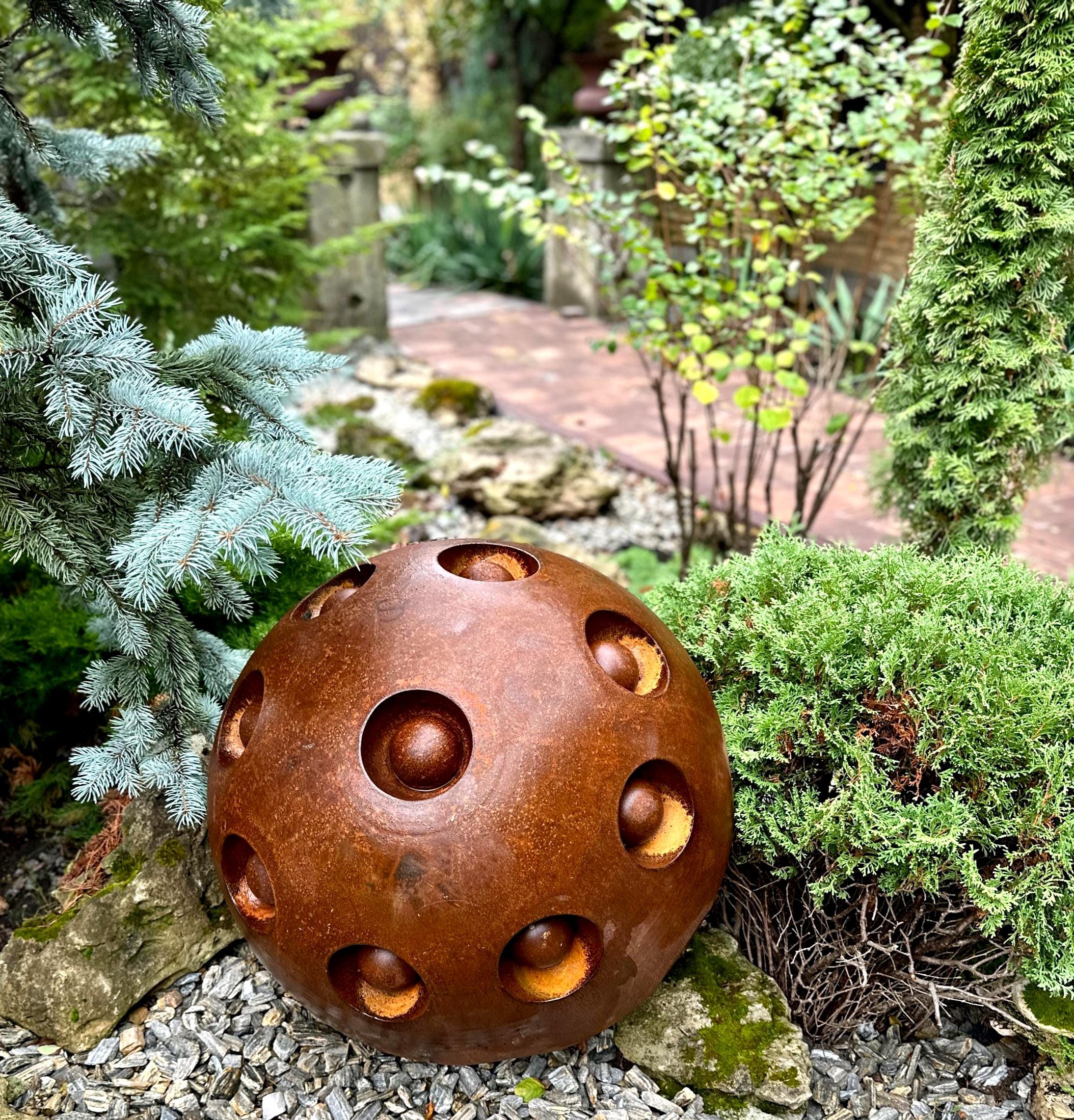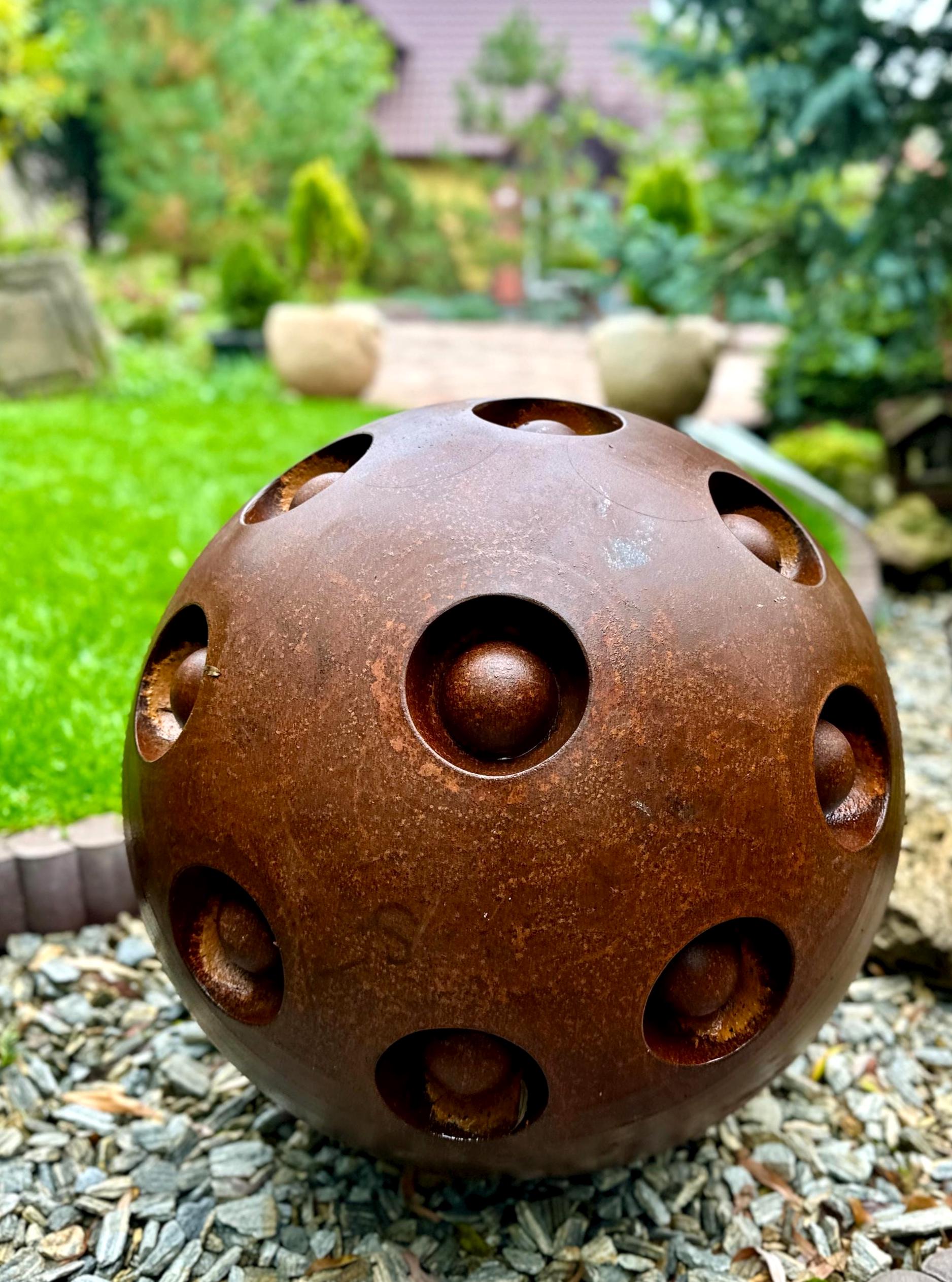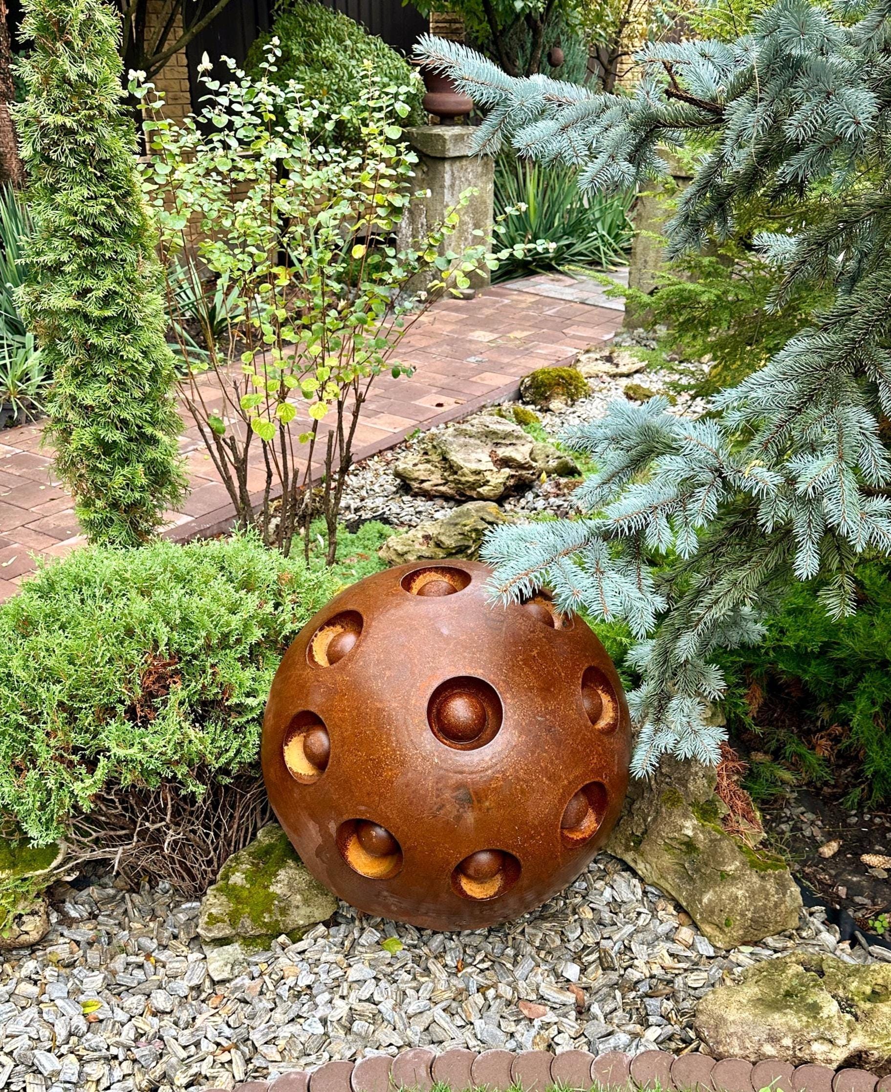 27” Rusty Metal Zen Garden Sphere – Handcrafted Outdoor Art
