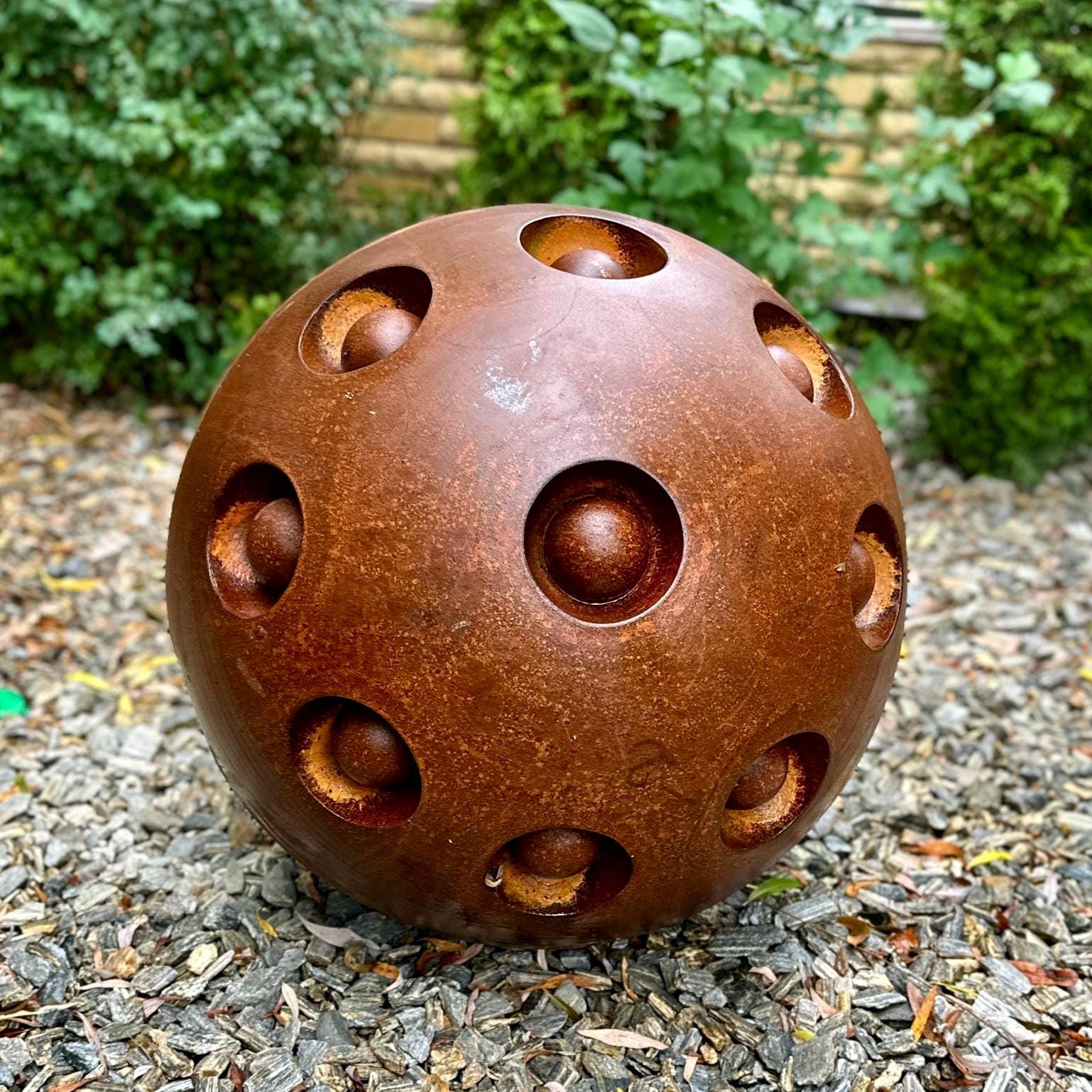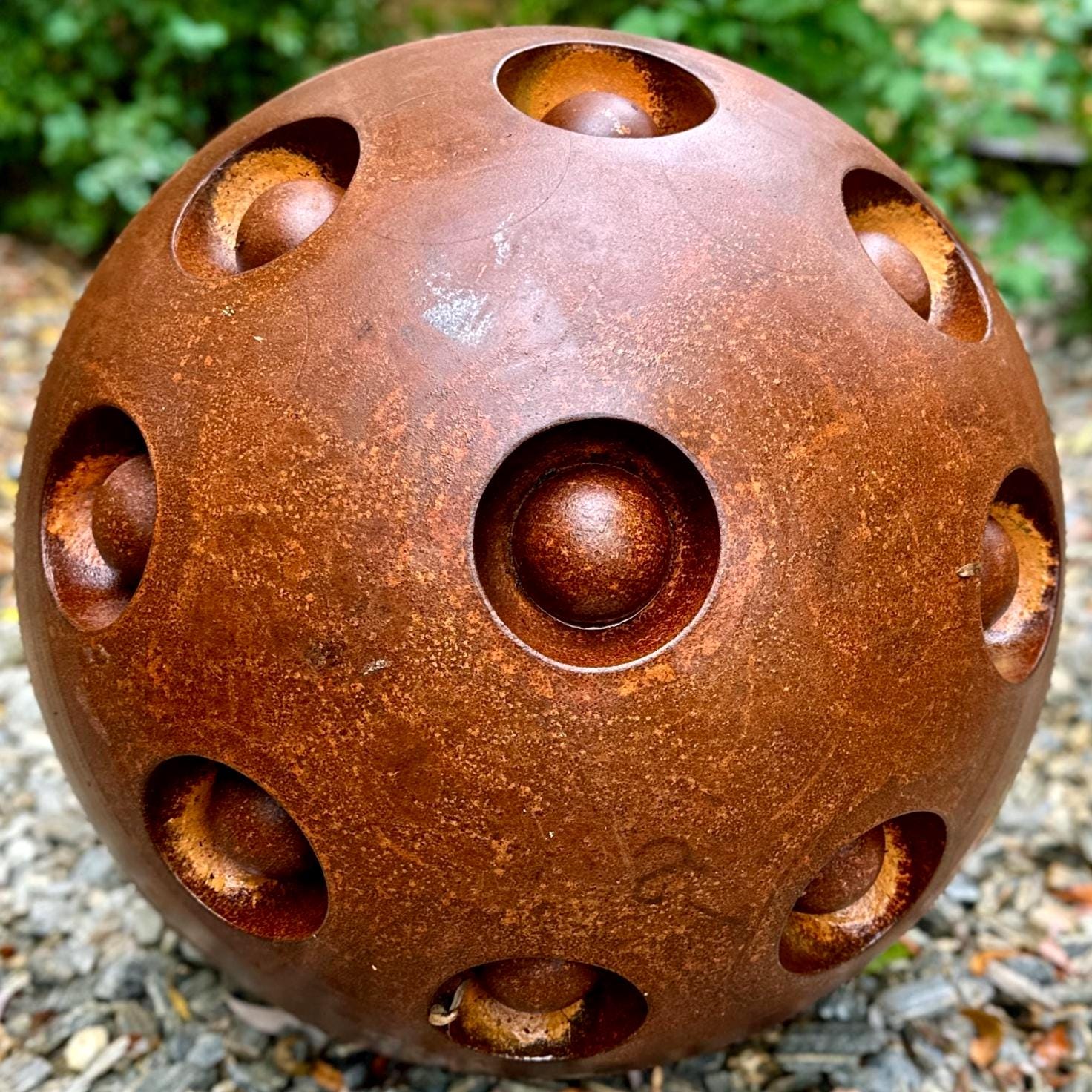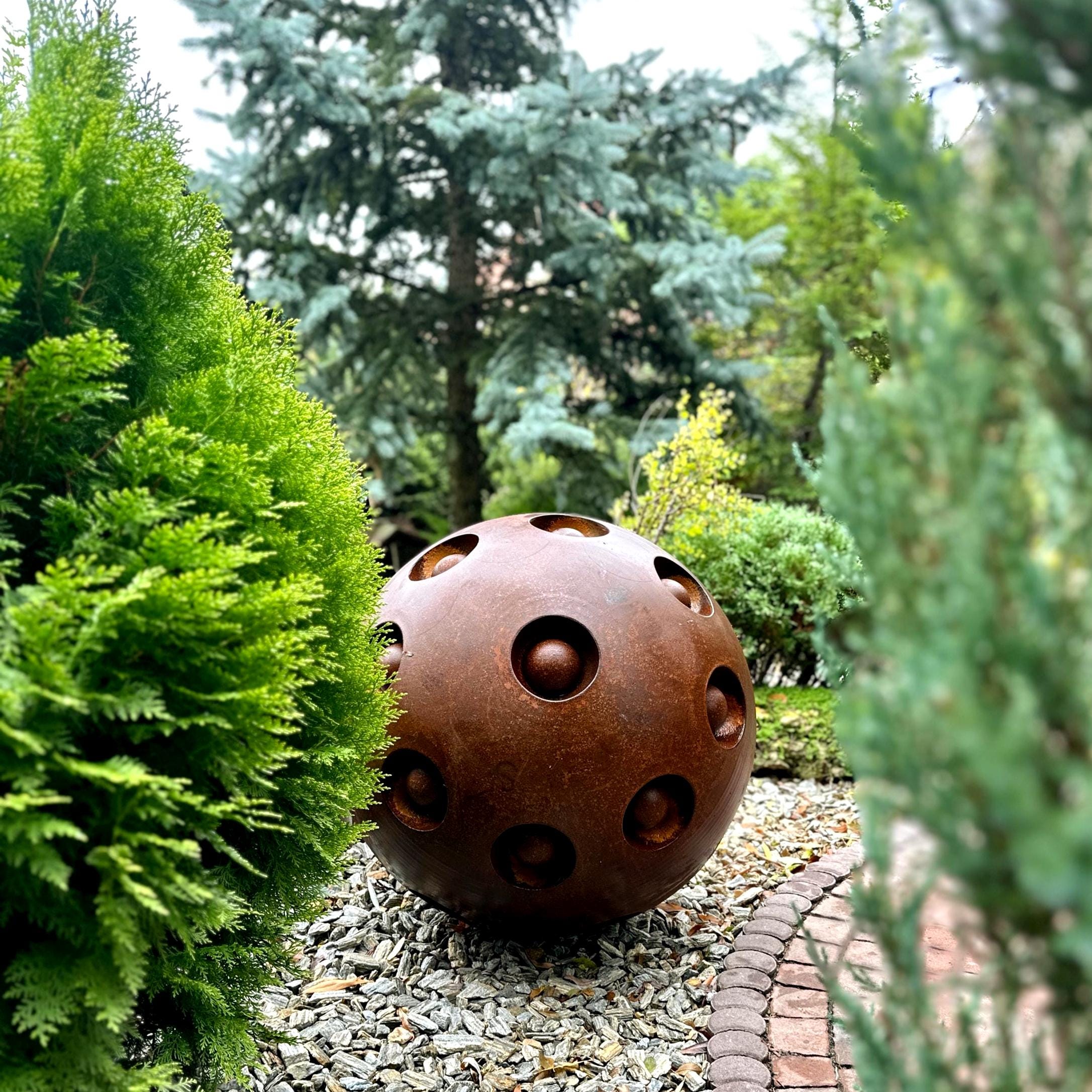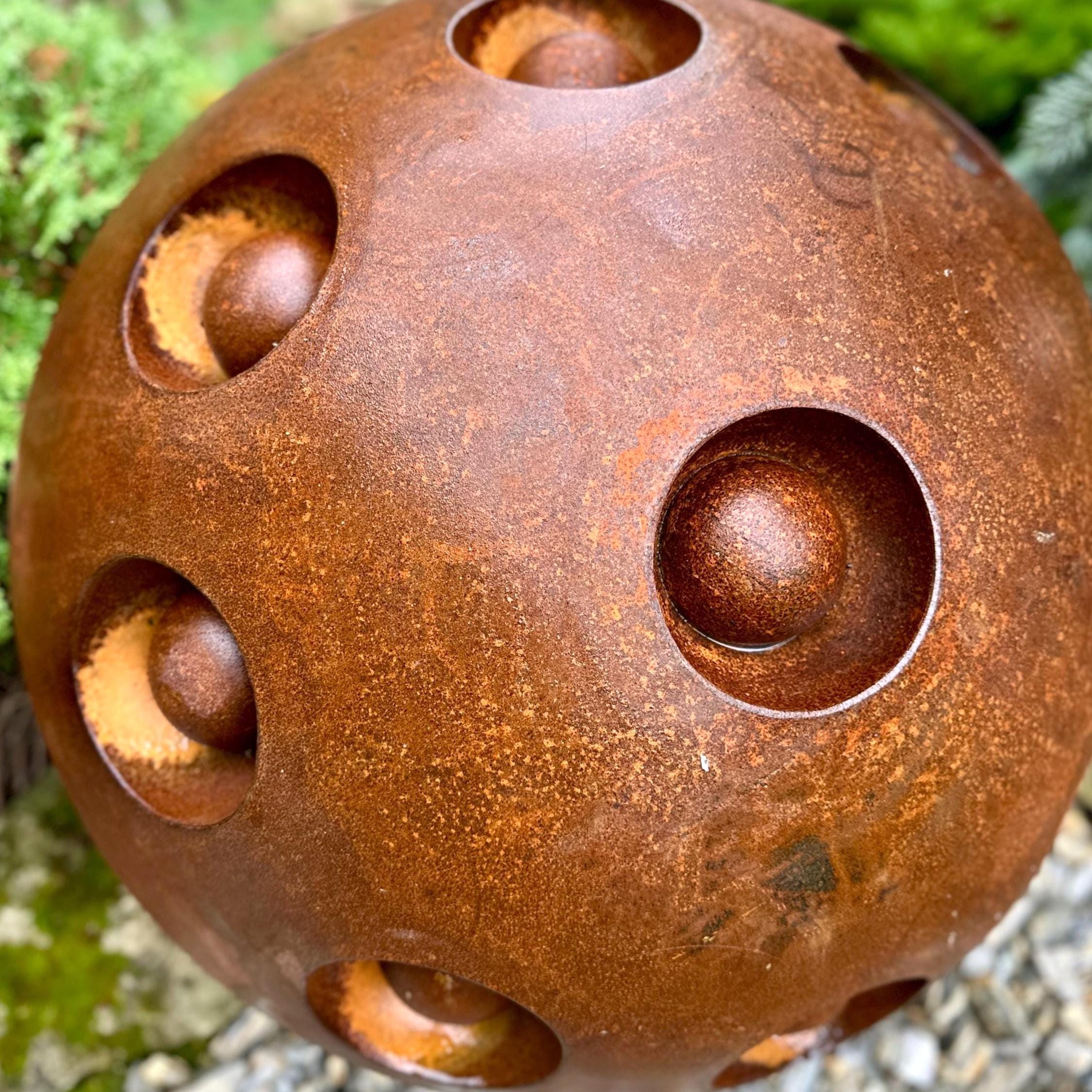 27” Rusty Metal Zen Garden Sphere – Handcrafted Outdoor Art