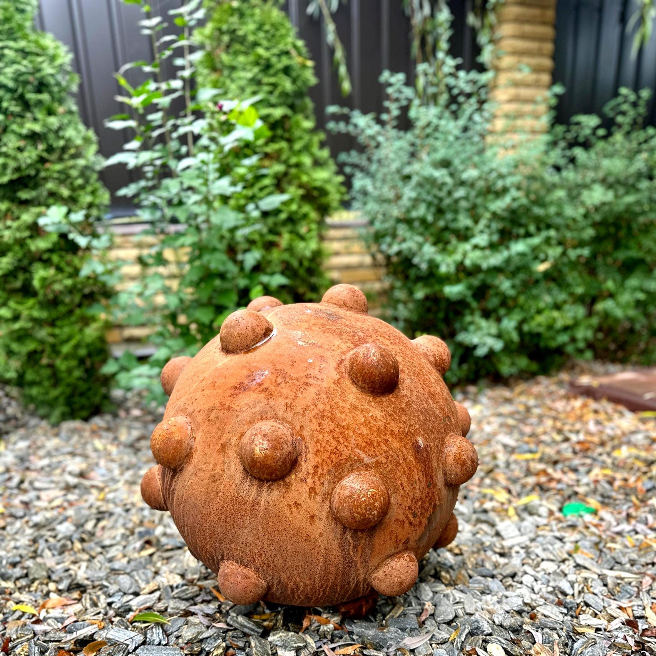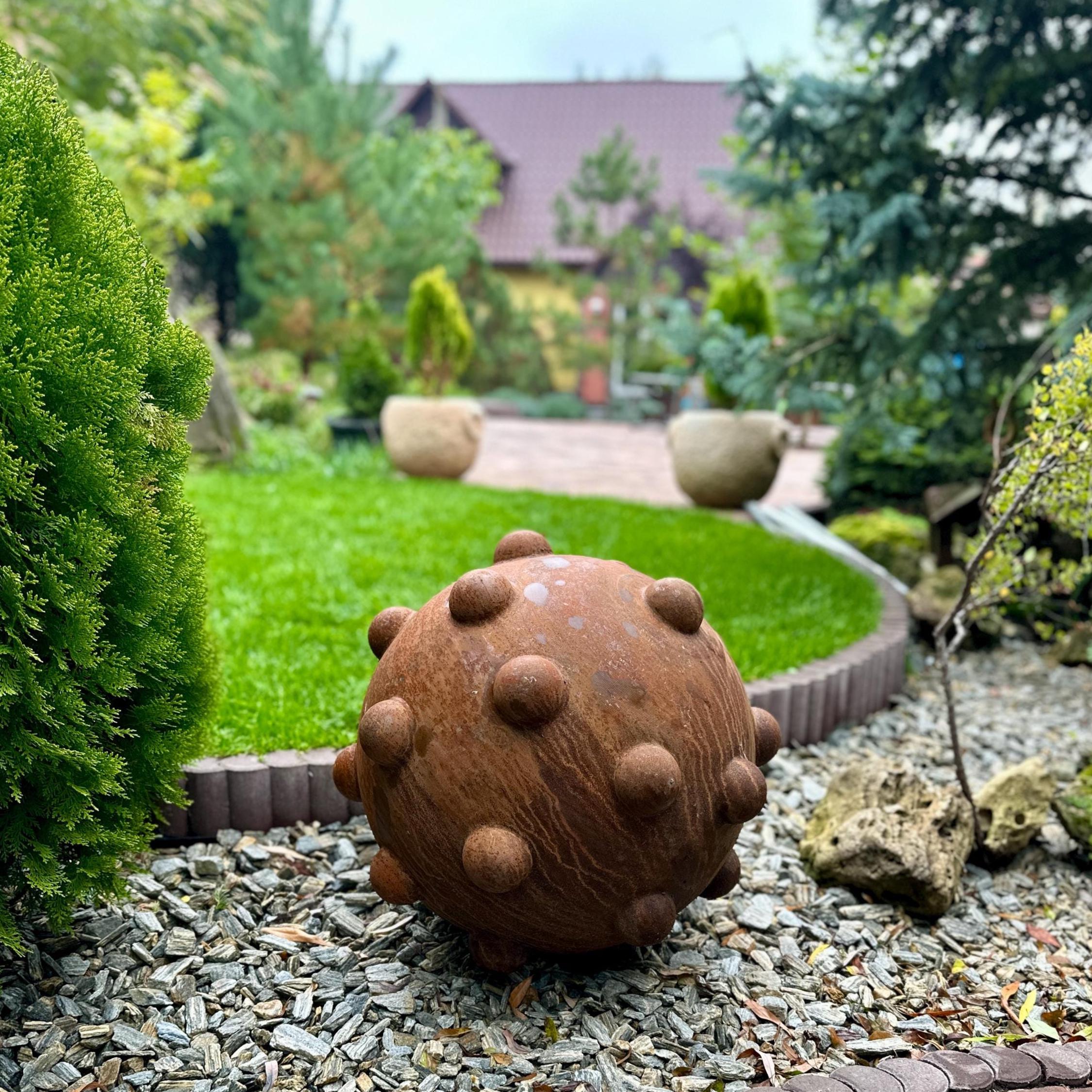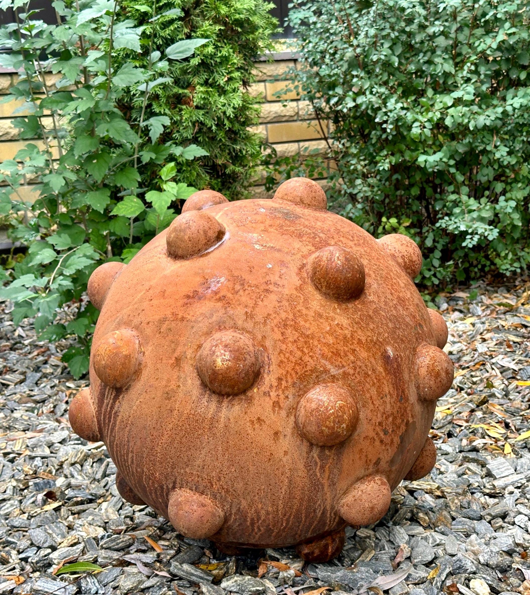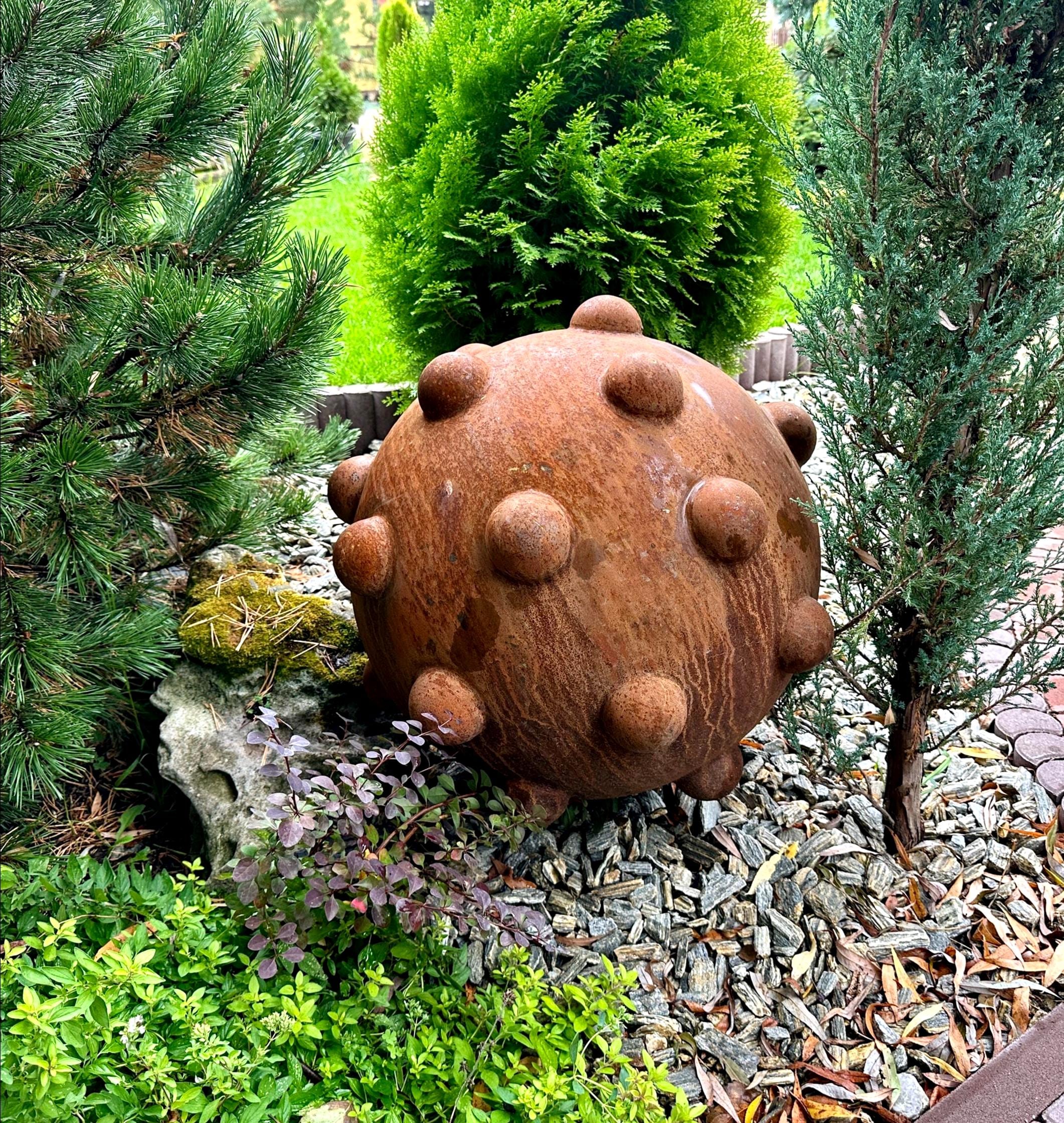 Transform your outdoor space with this 24-inch (60 cm) handcrafted rusty metal ball, which combines contemporary design with rustic elegance. Crafted from high-quality steel and naturally aged to achieve a rich, earthy patina, this striking garden sculpture is a true eye-catcher.