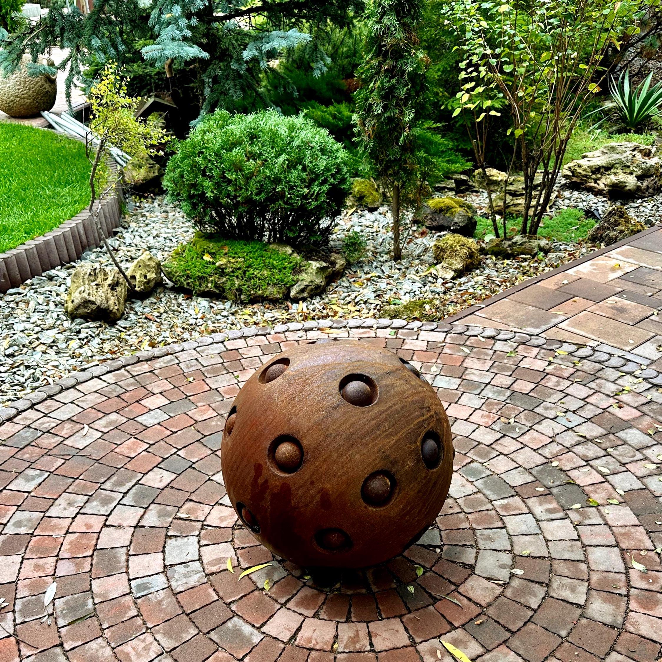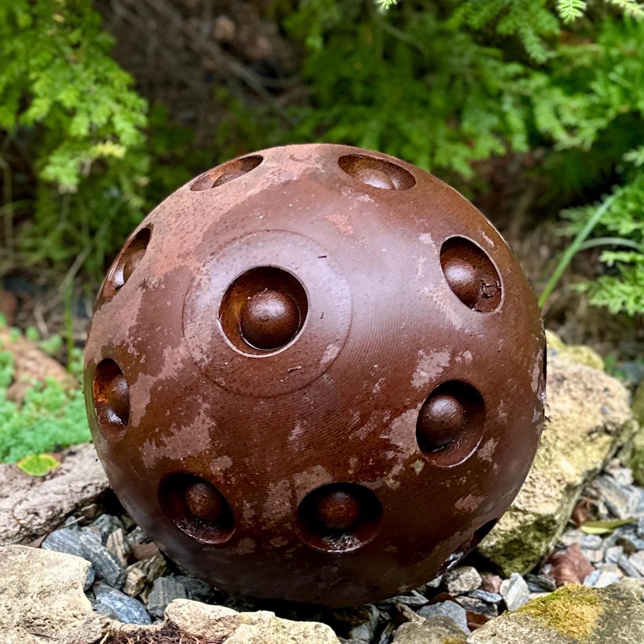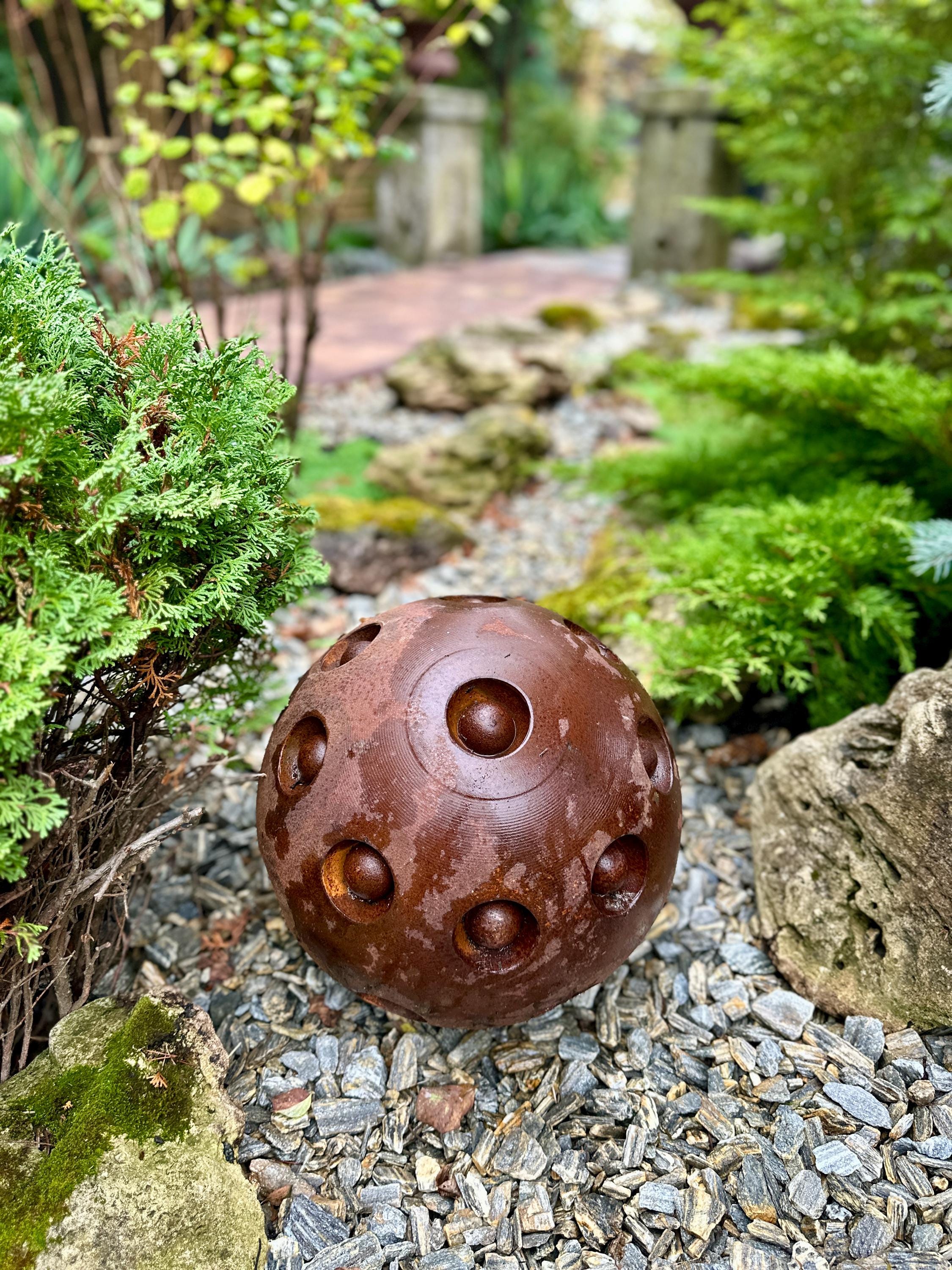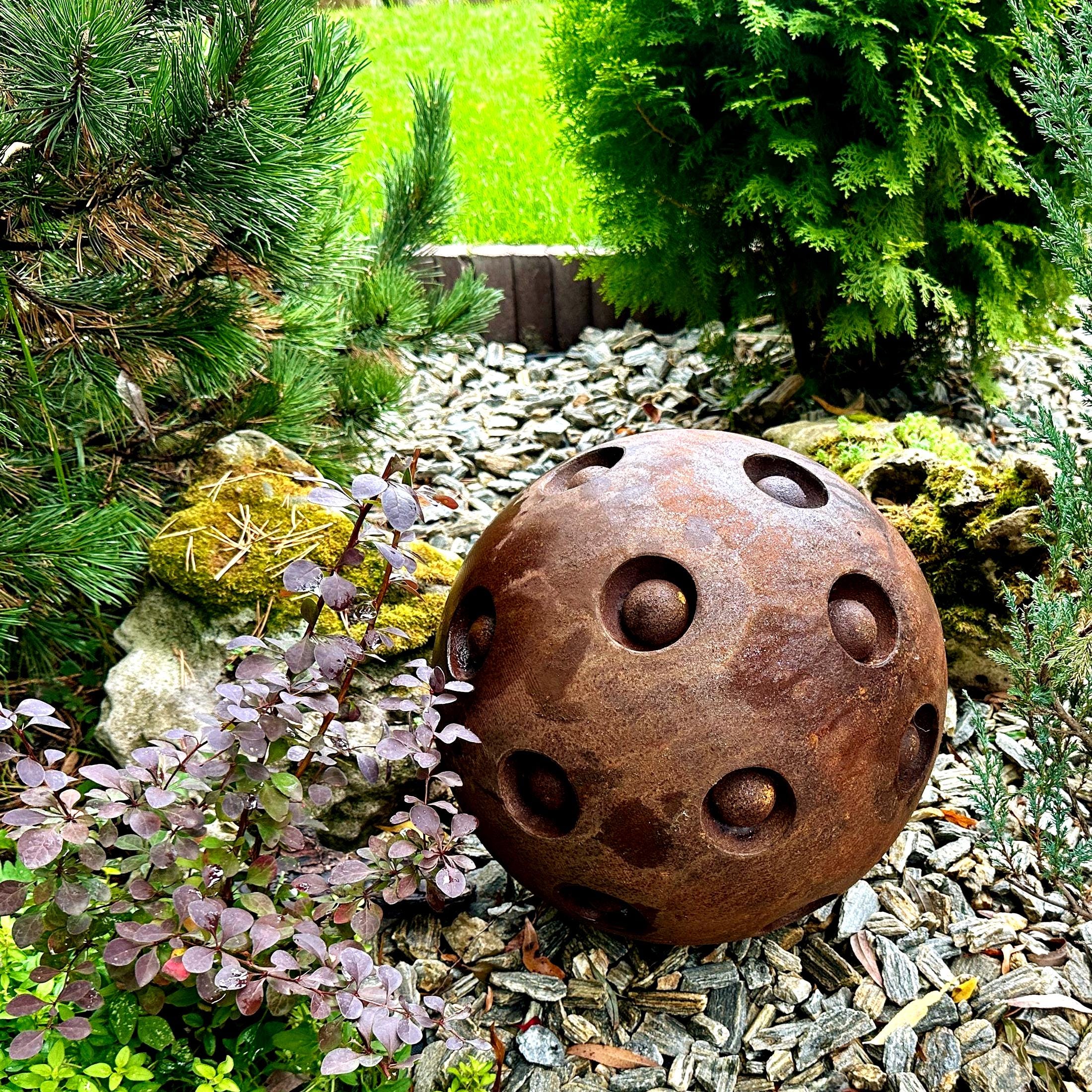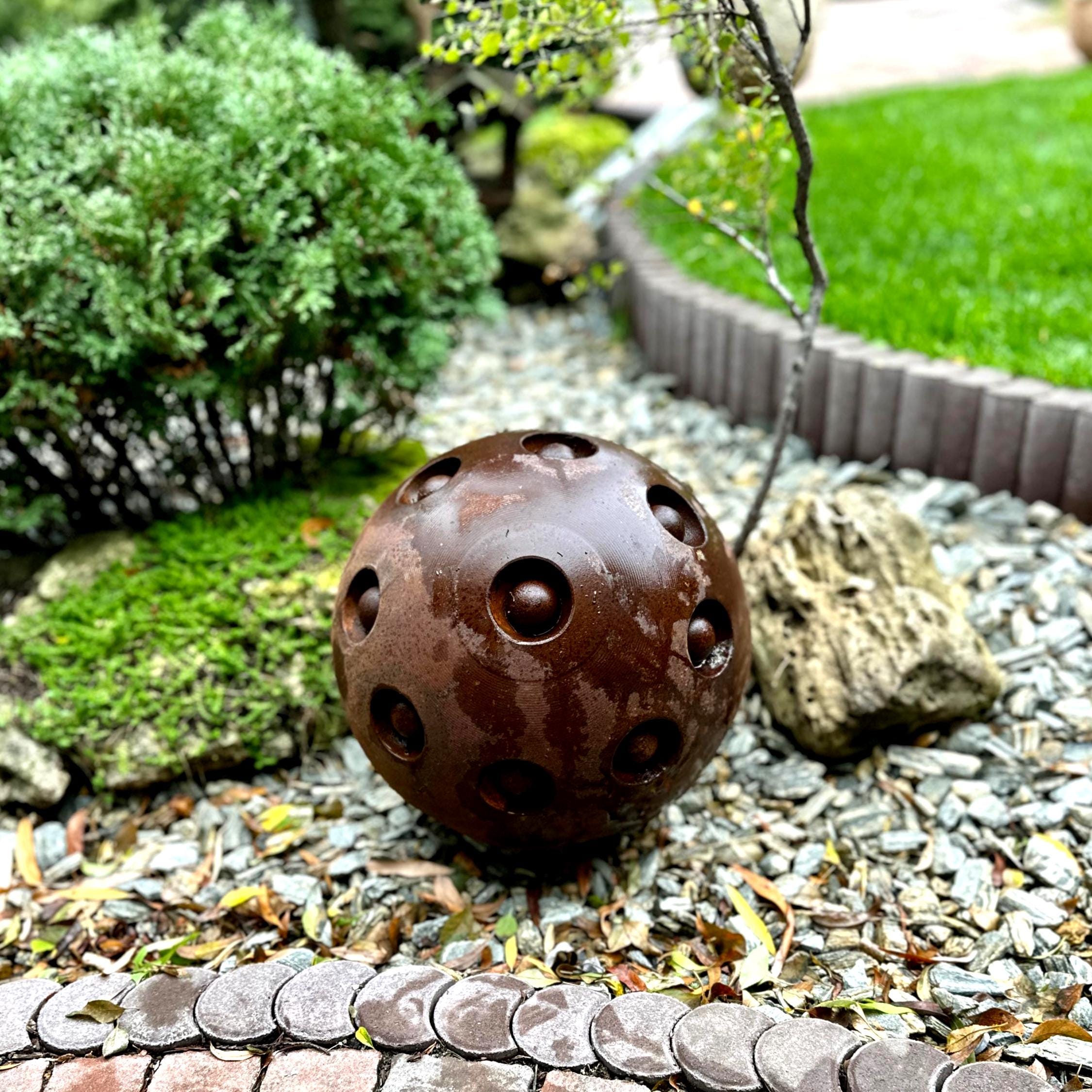 20” Rusty Metal Zen Garden Sphere – Handcrafted Outdoor Art