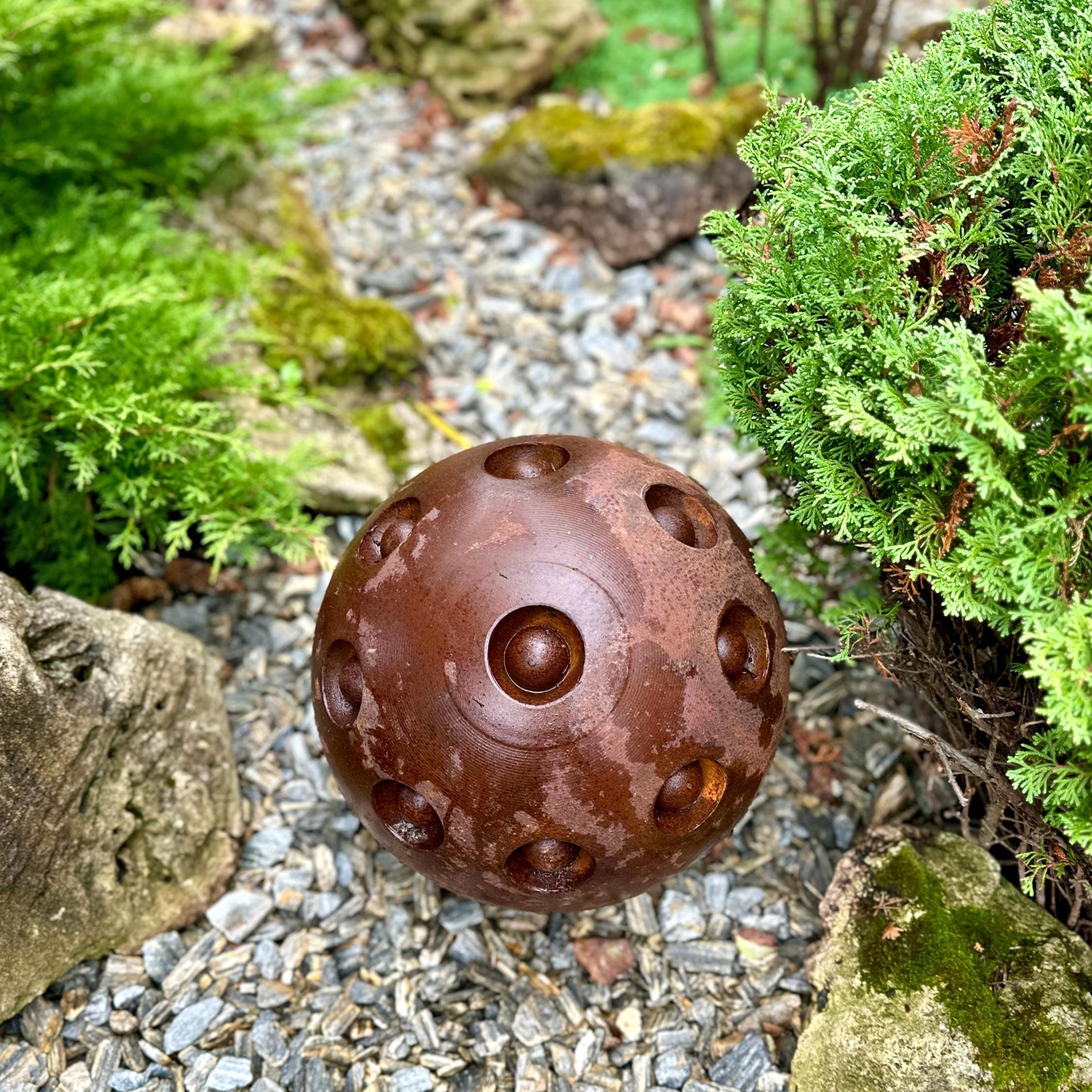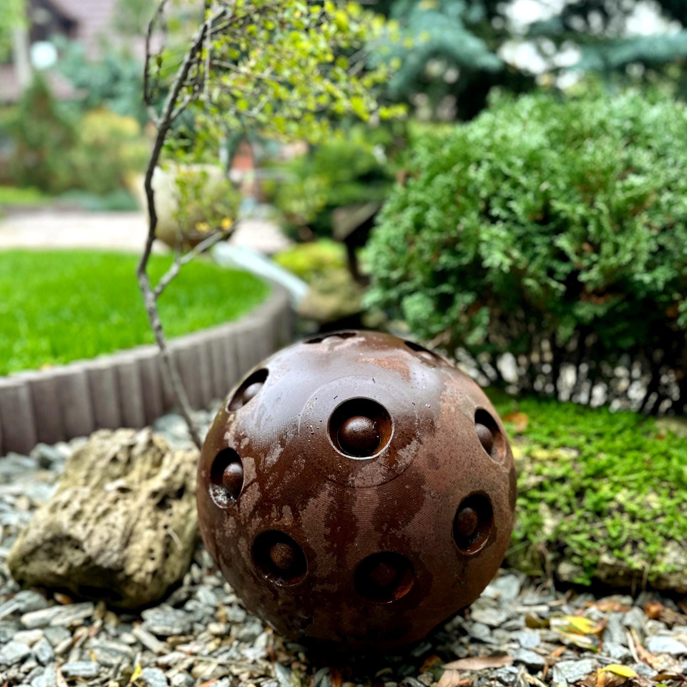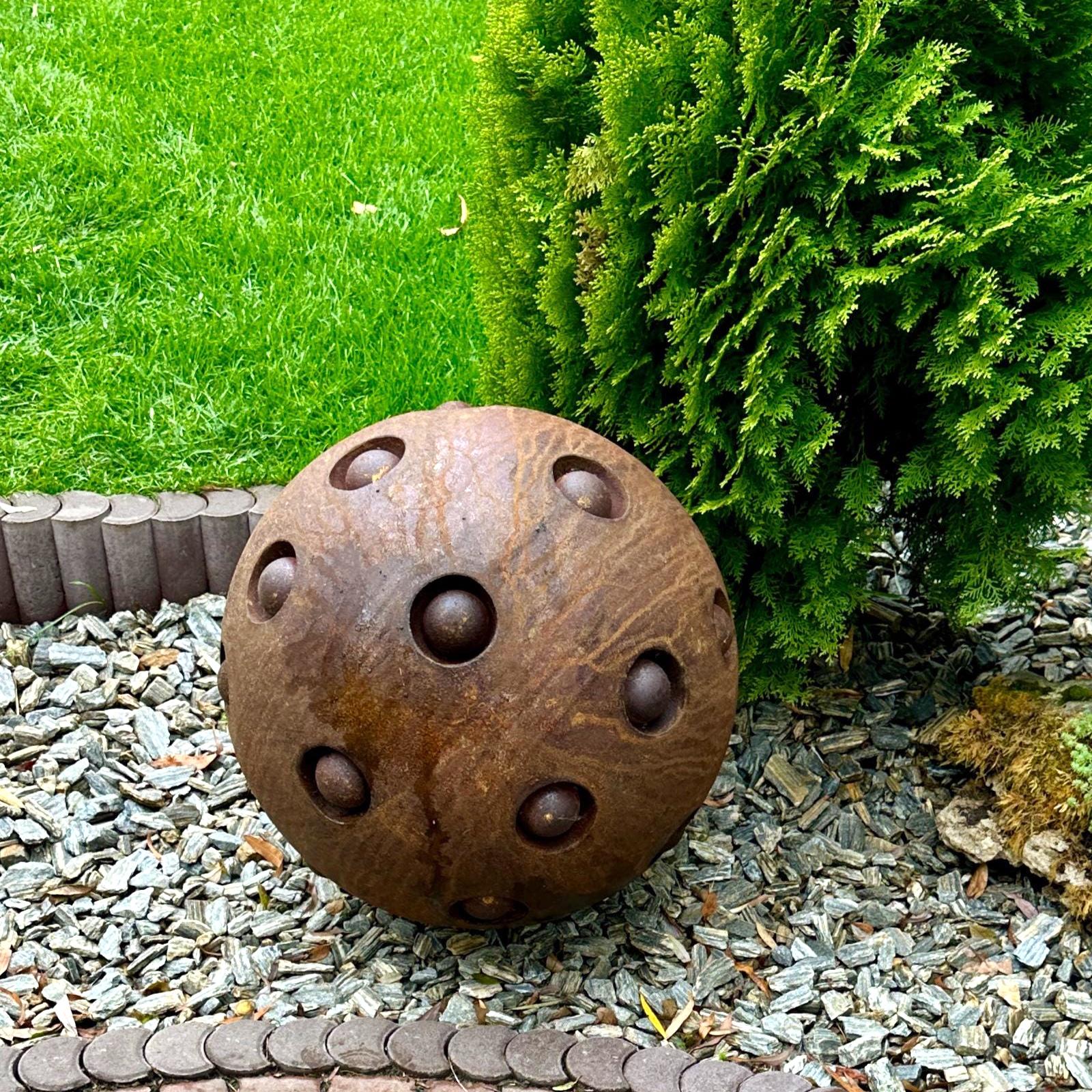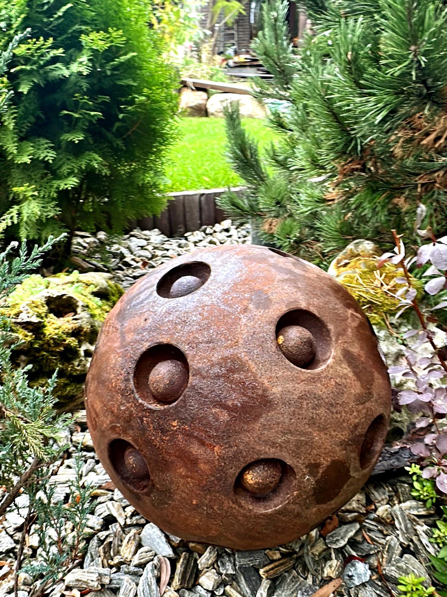 20” Rusty Metal Zen Garden Sphere – Handcrafted Outdoor Art