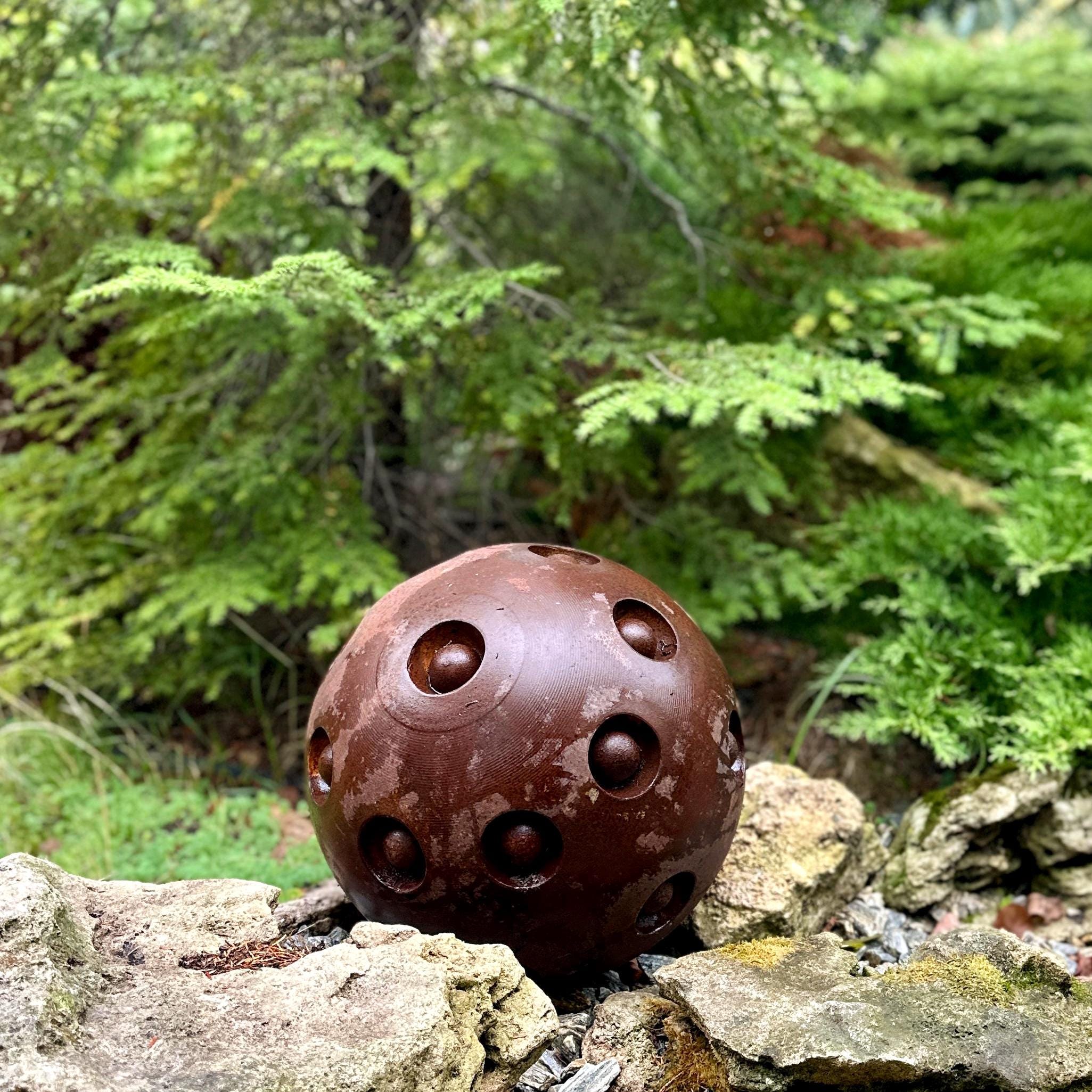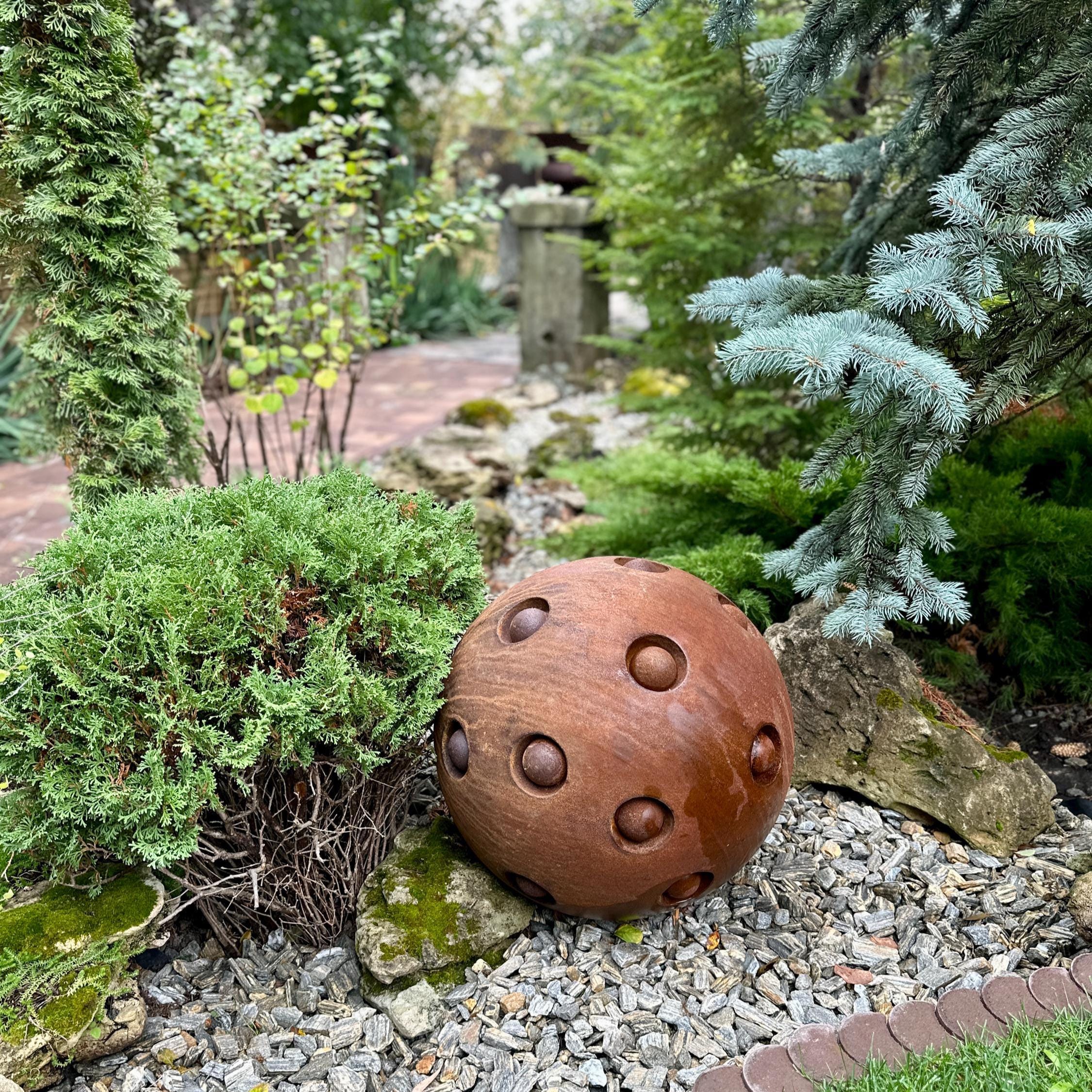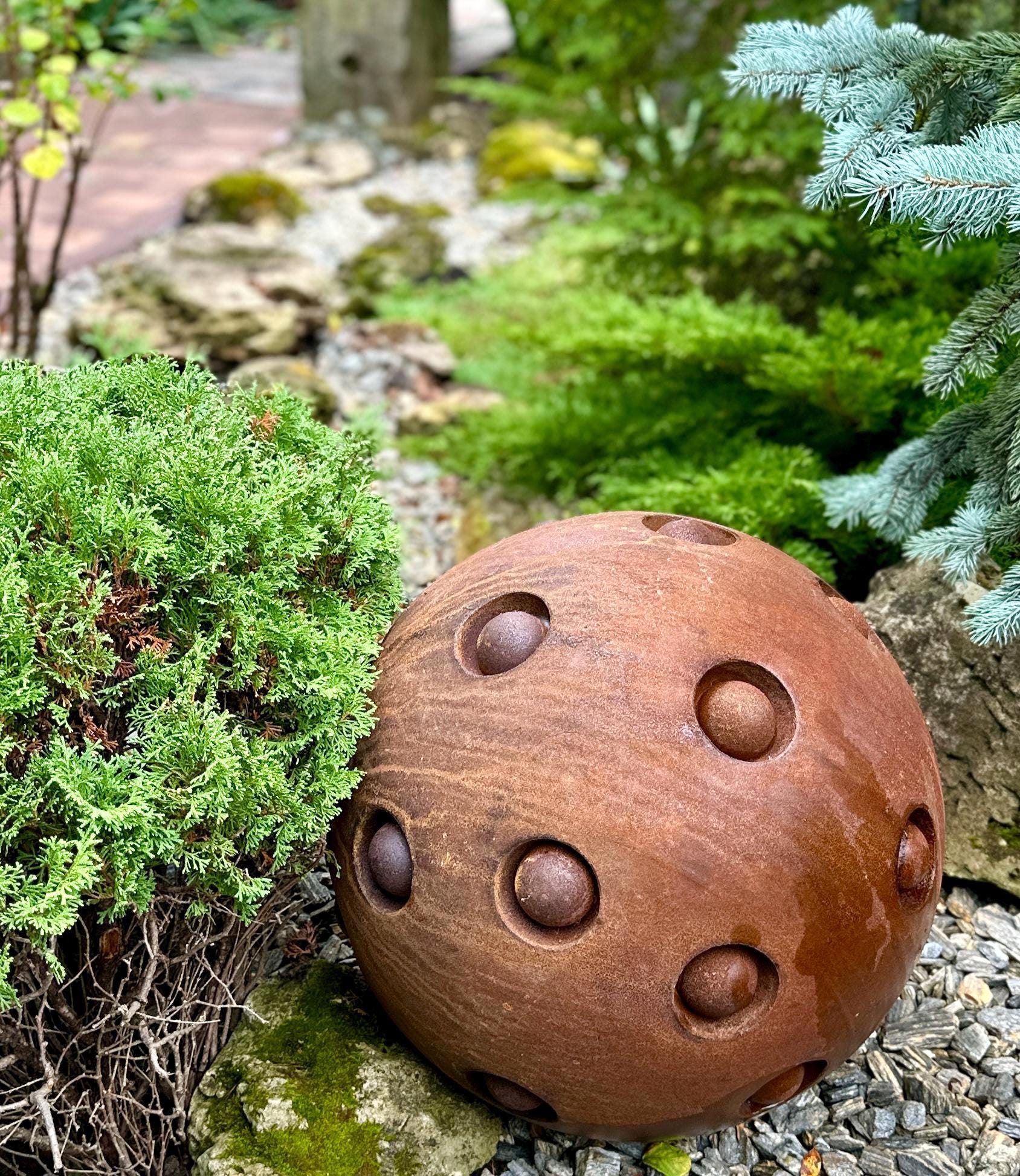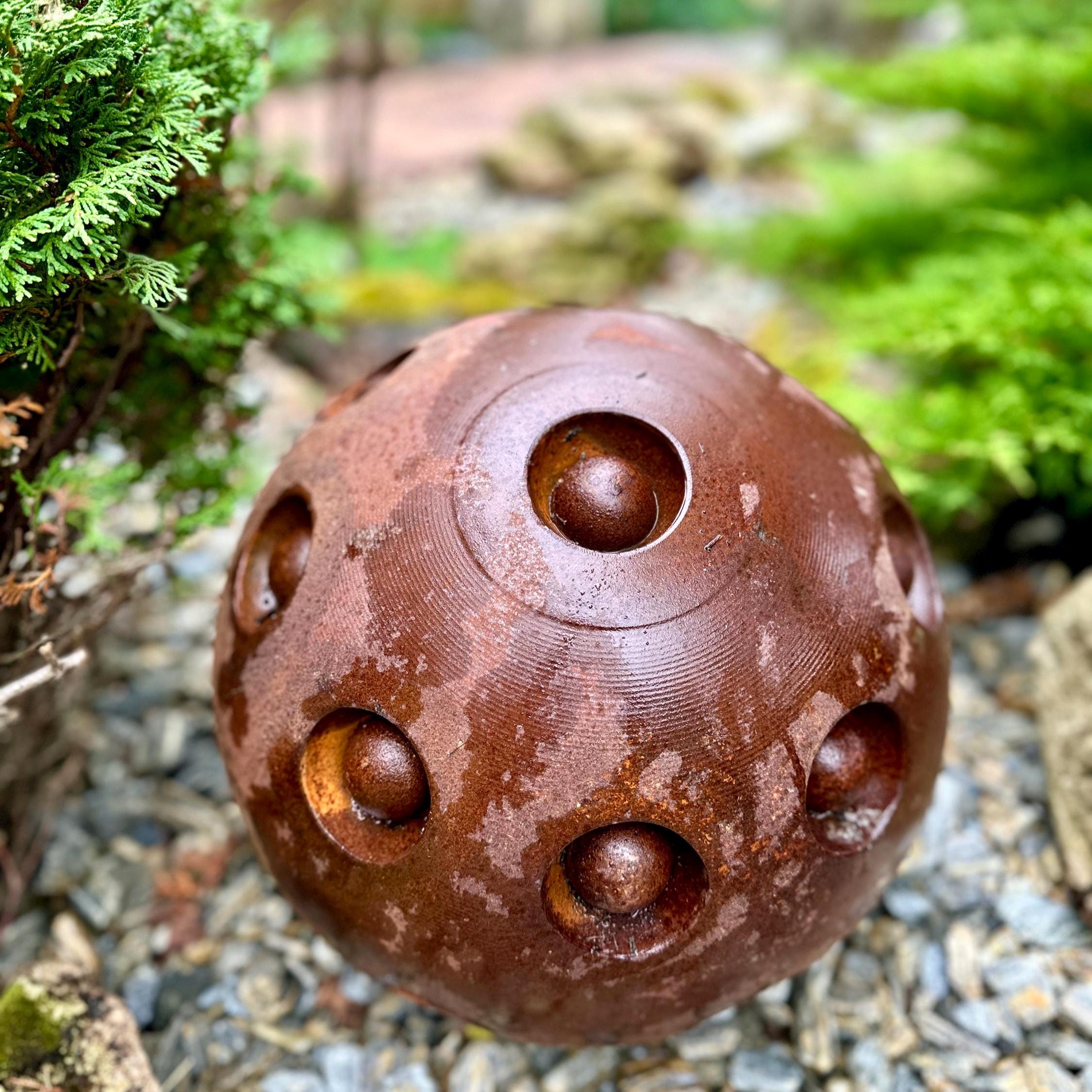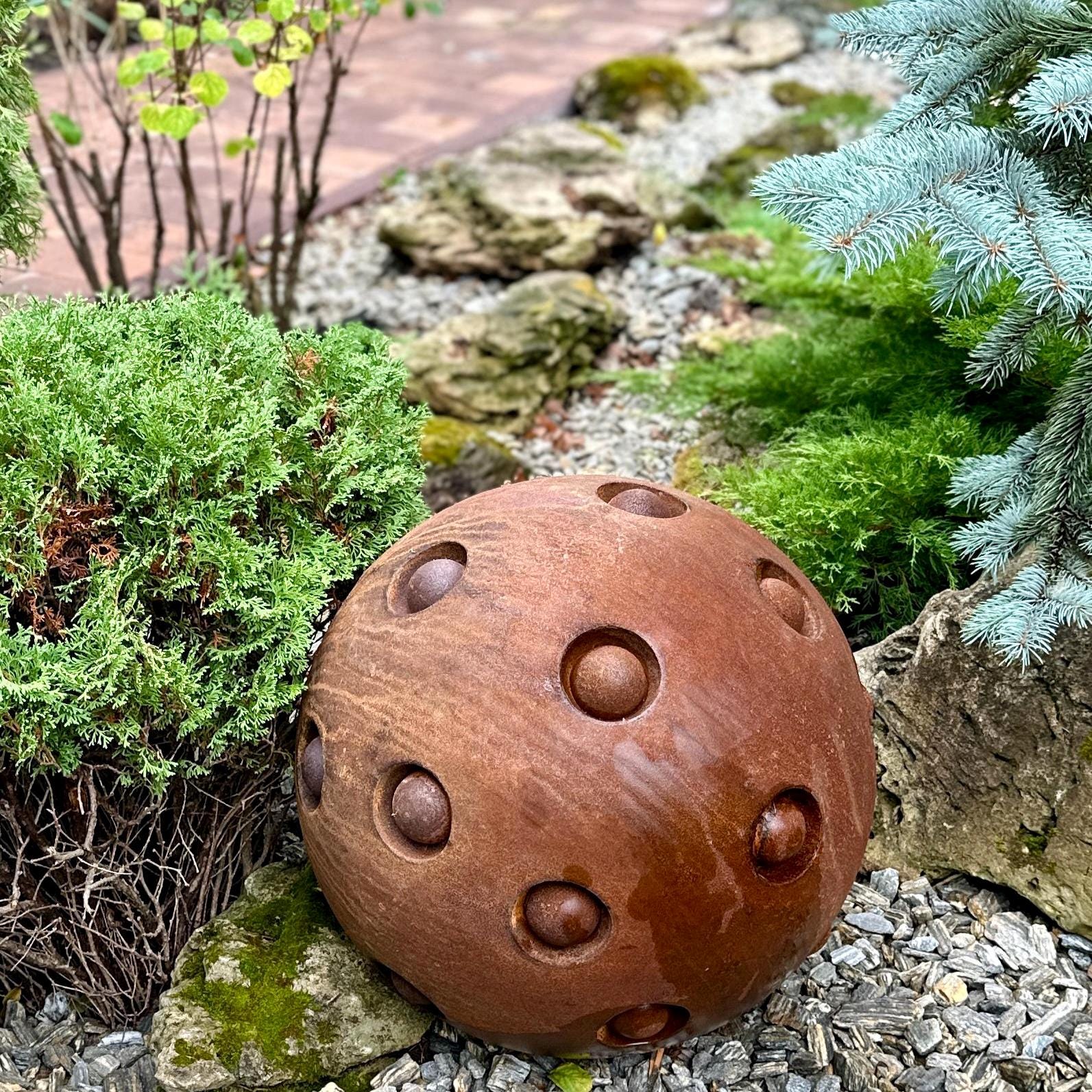 20” Rusty Metal Zen Garden Sphere – Handcrafted Outdoor Art