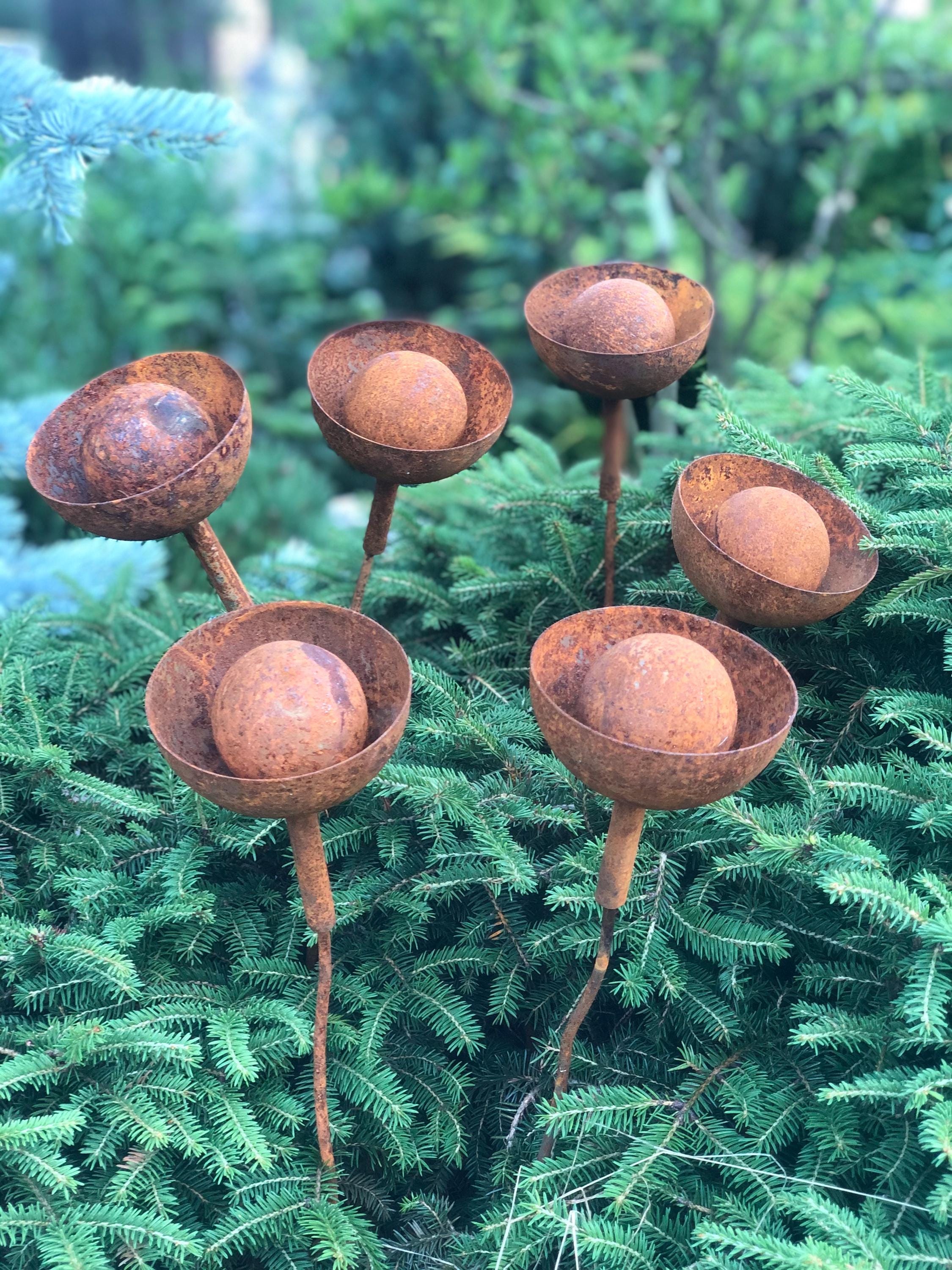 Set of 6 Rustic Metal Flowers – Handmade Garden Decor