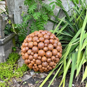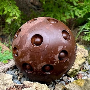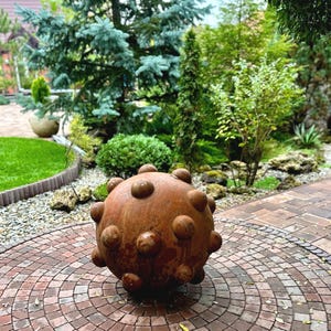 Introducing our beautiful and unique set of five 35”, 27”, 20”, 14” and 10” Rusty Metal Zen Garden Spheres. Handcrafted with love and care, this stunning piece of metal art will add a touch of rustic charm to your home or garden. The intricate design creates an intricate texture that will leave you feeling calm and relaxed. The spheres are made from high-quality materials to ensure durability, making it the perfect addition to your outdoor space. Its versatile look can provide accent for any decor style. Whether you're a fan of traditional designs or contemporary decor, these zen garden sphere are sure to impress. It's the perfect gift for any art or garden enthusiast, or a beautiful piece to add to your own collection. So don't wait and make your purchase today!