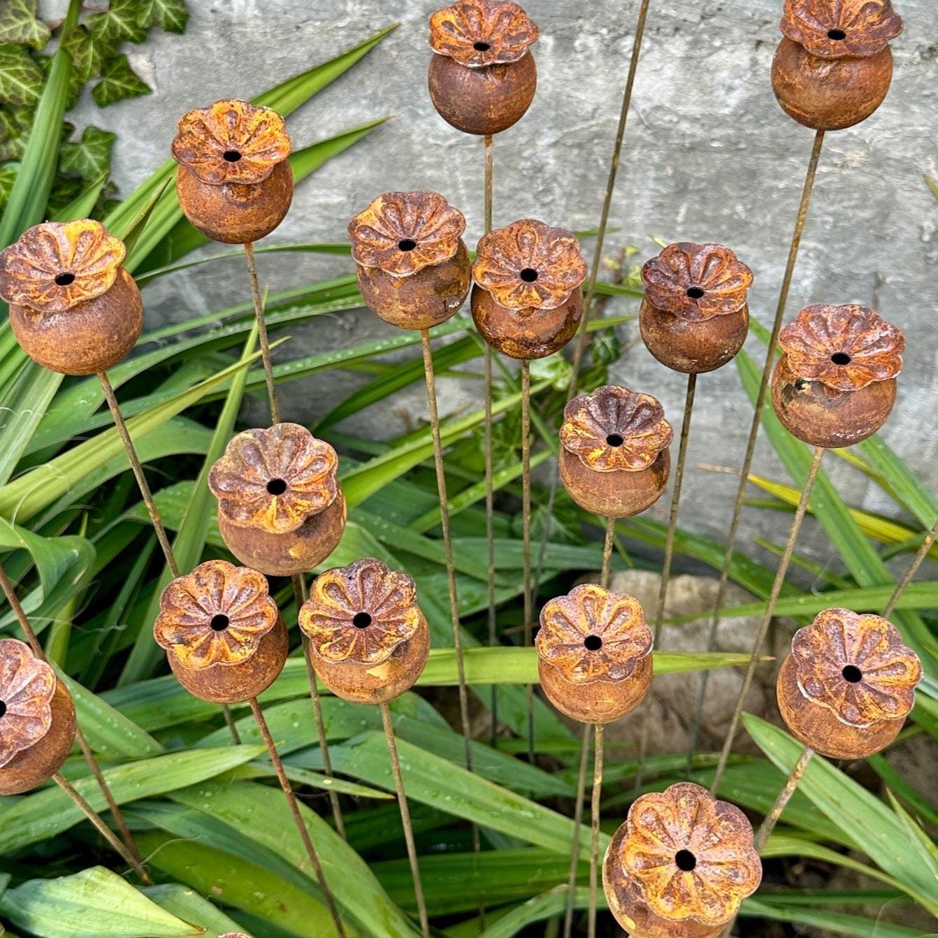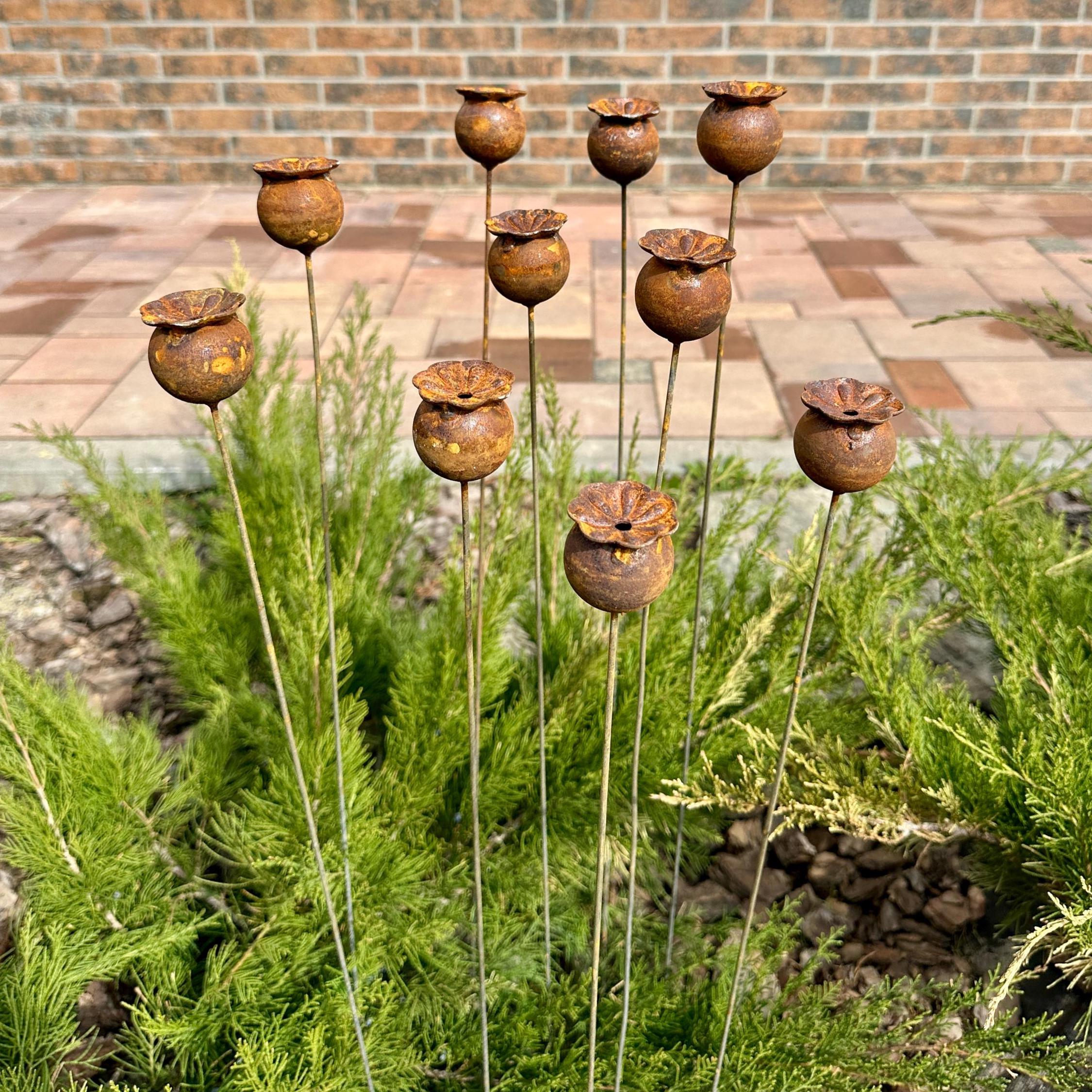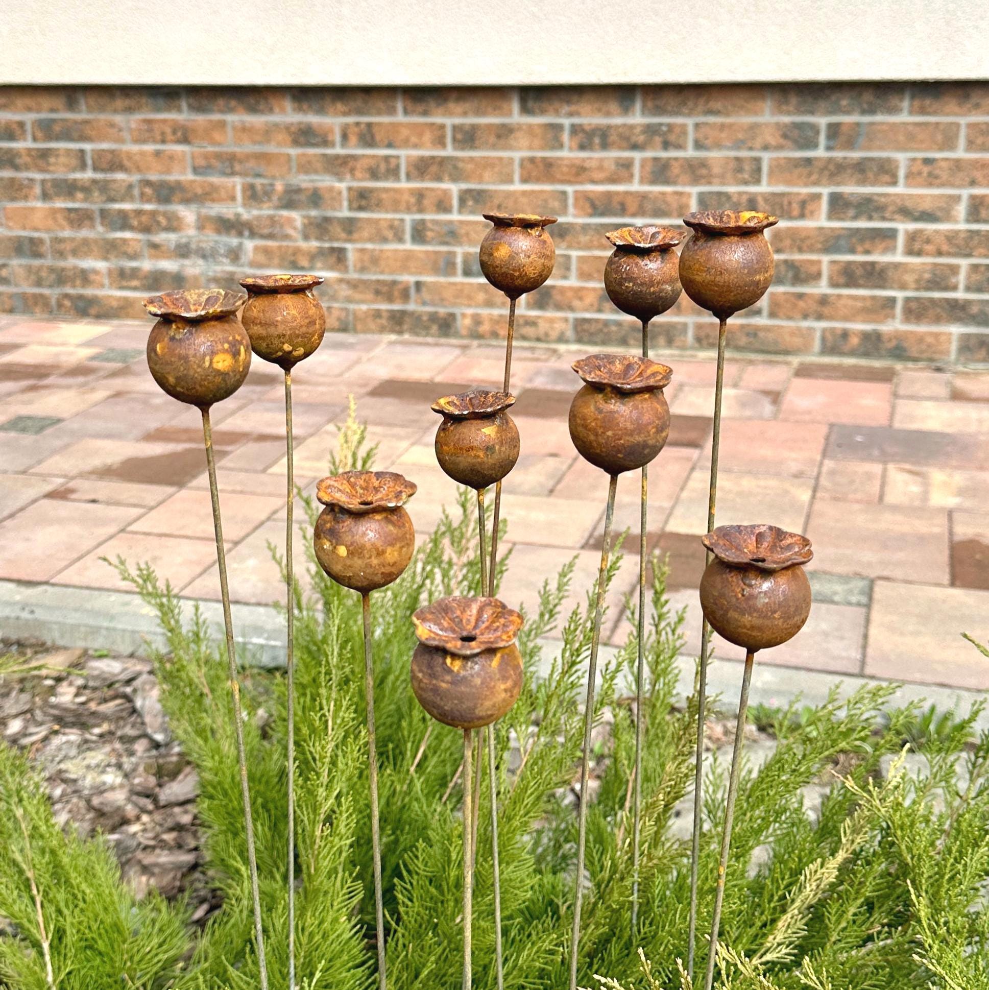Bring warmth and character to your garden with this set of handcrafted rusty metal decorative flowers, available in different set options — 6, 10, or 20 pieces. Choose the quantity that best fits your garden design and create your own unique outdoor composition.