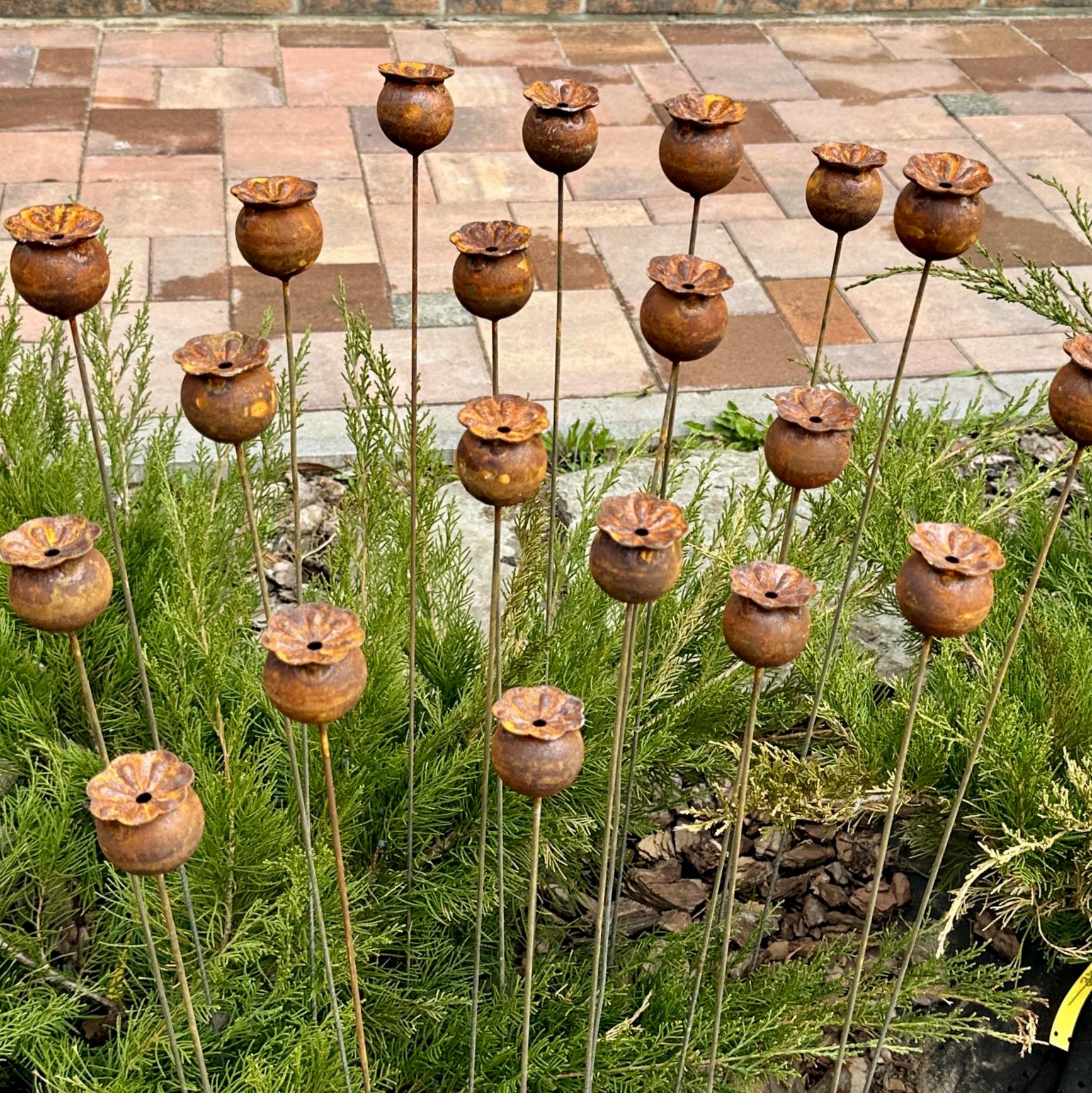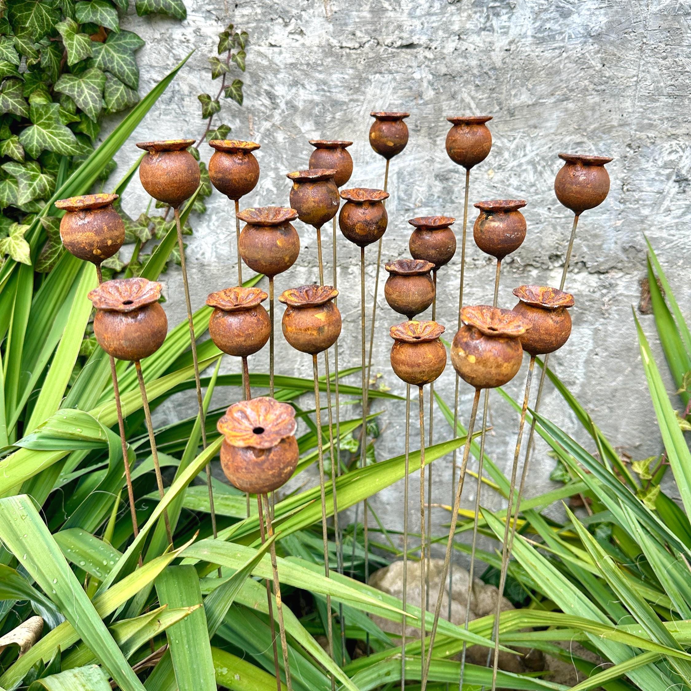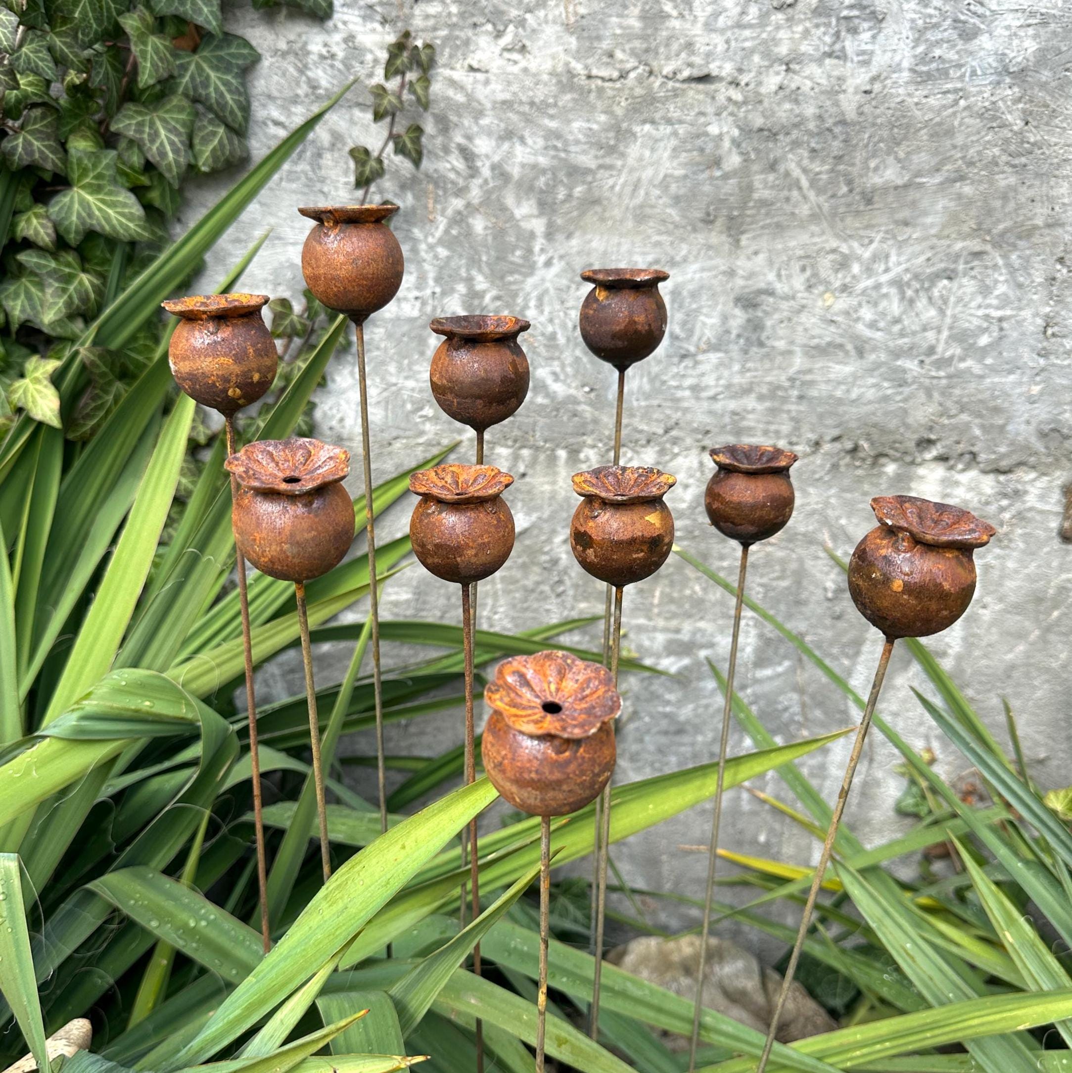 Bring warmth and character to your garden with this set of handcrafted rusty metal decorative flowers, available in different set options — 6, 10, or 20 pieces. Choose the quantity that best fits your garden design and create your own unique outdoor composition.