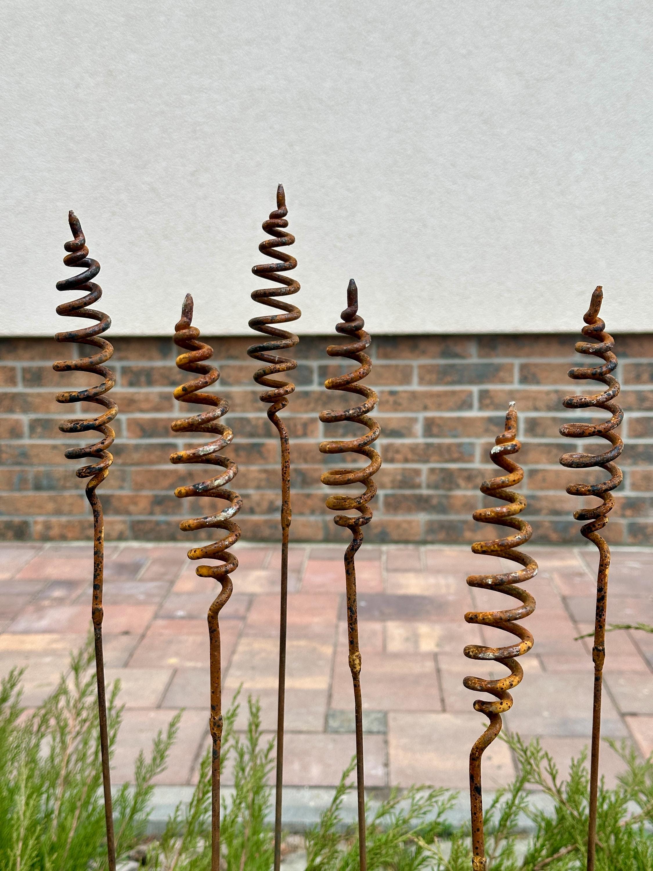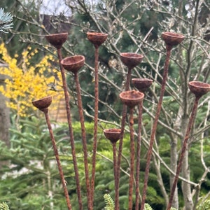 - Six Rusty metal flowers - about 35” (90 cm) high and 2.5 ” (6 cm) in diameter. Weight is around 0,3 lbs (350 gr) each.