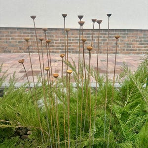 - Ten Rusty metal flowers - about 31” (80 cm) high and about 0.8” (2 cm) in diameter. Weight is around 0,2 lbs (100 gr) each.