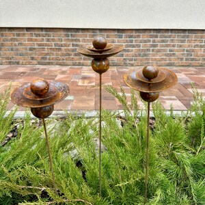 This Rustic handmade metal flowers set of 20 will place decorative accent in the garden compositions and landscape, create an atmosphere of romance and coziness in your home. This rusty metal art could be used as decoration at your home, in your garden, backyard, terrace or entrance to your home. This yard decor made from natural metal and it covered with a natural rust. This rusty garden decor can be used all year round, it is not afraid of precipitation, direct sunlight, etc.